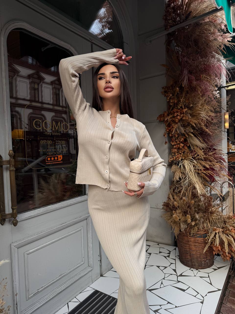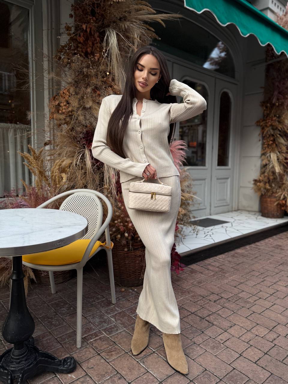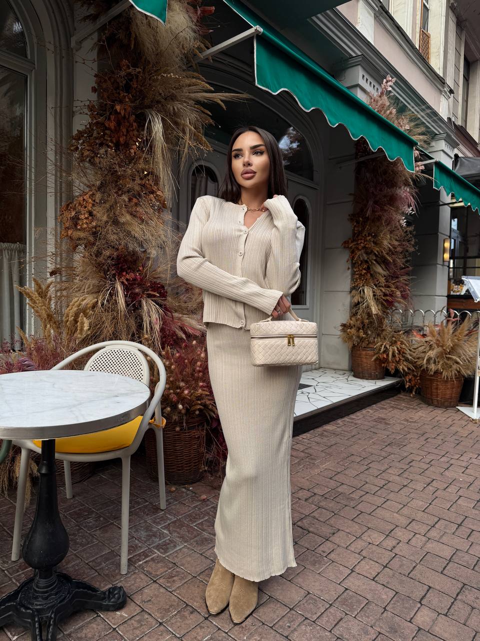 Жіночий Елегантний Бежевий Костюм – Жакет на Ґудзиках + Спідниця Максі