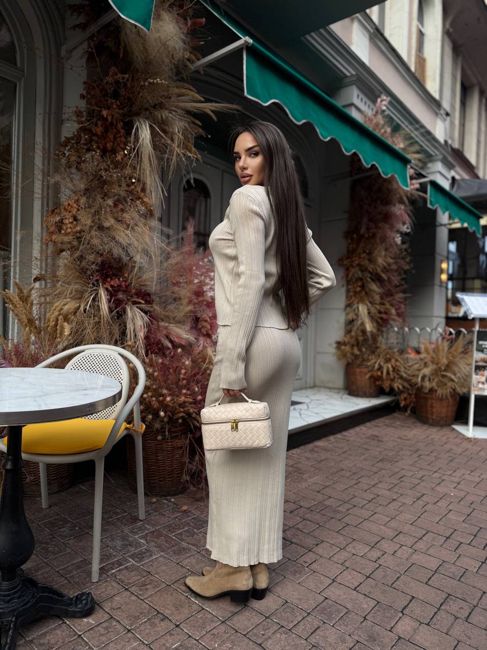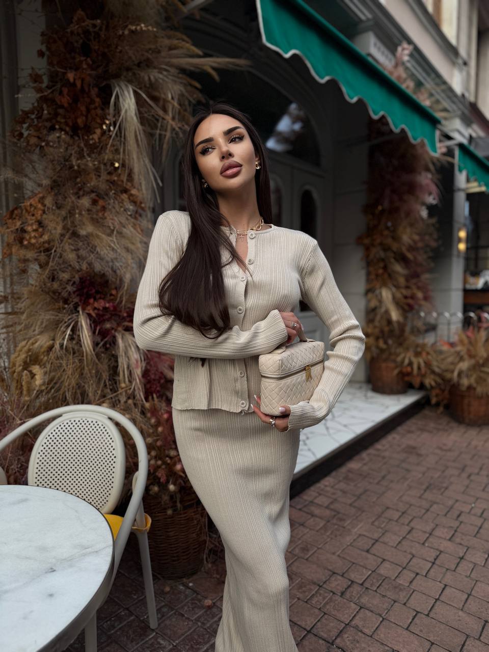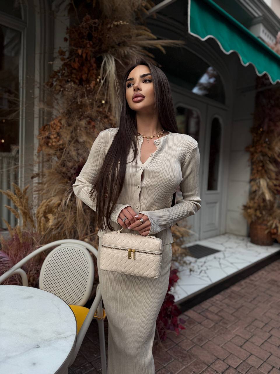 Жіночий Елегантний Бежевий Костюм – Жакет на Ґудзиках + Спідниця Максі