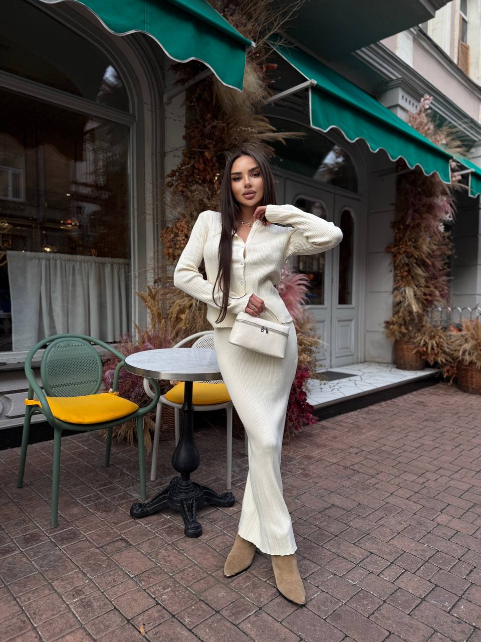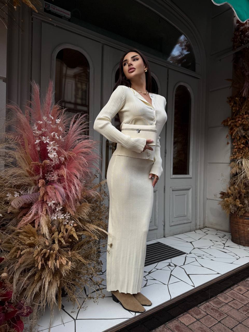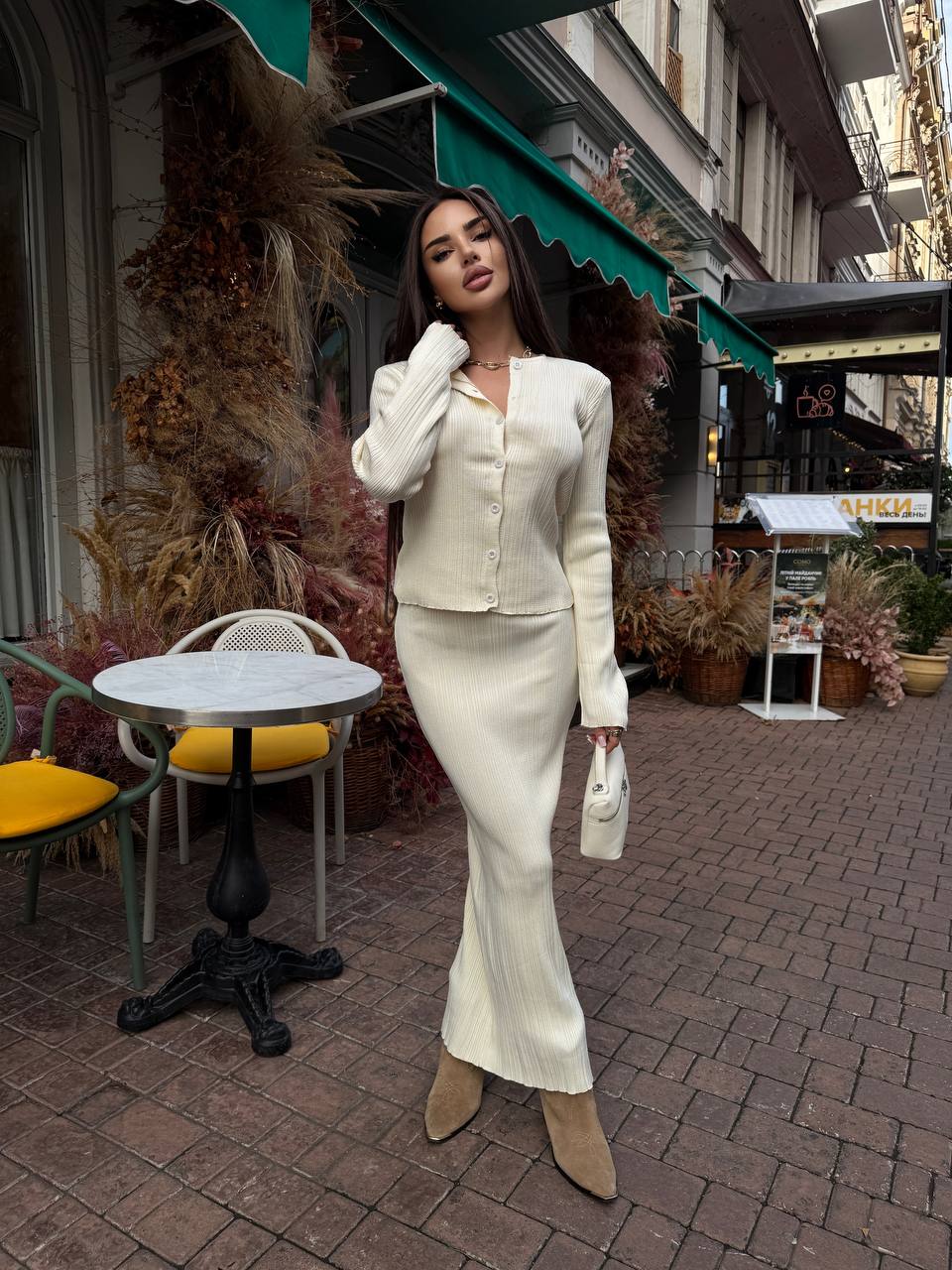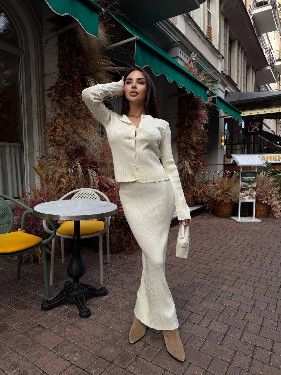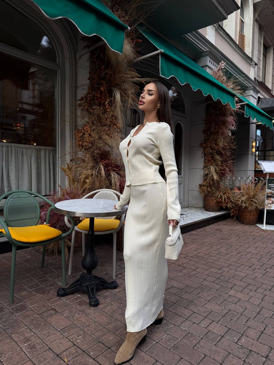 Жіночий Елегантний Молочний Костюм – Жакет на Ґудзиках + Спідниця Максі