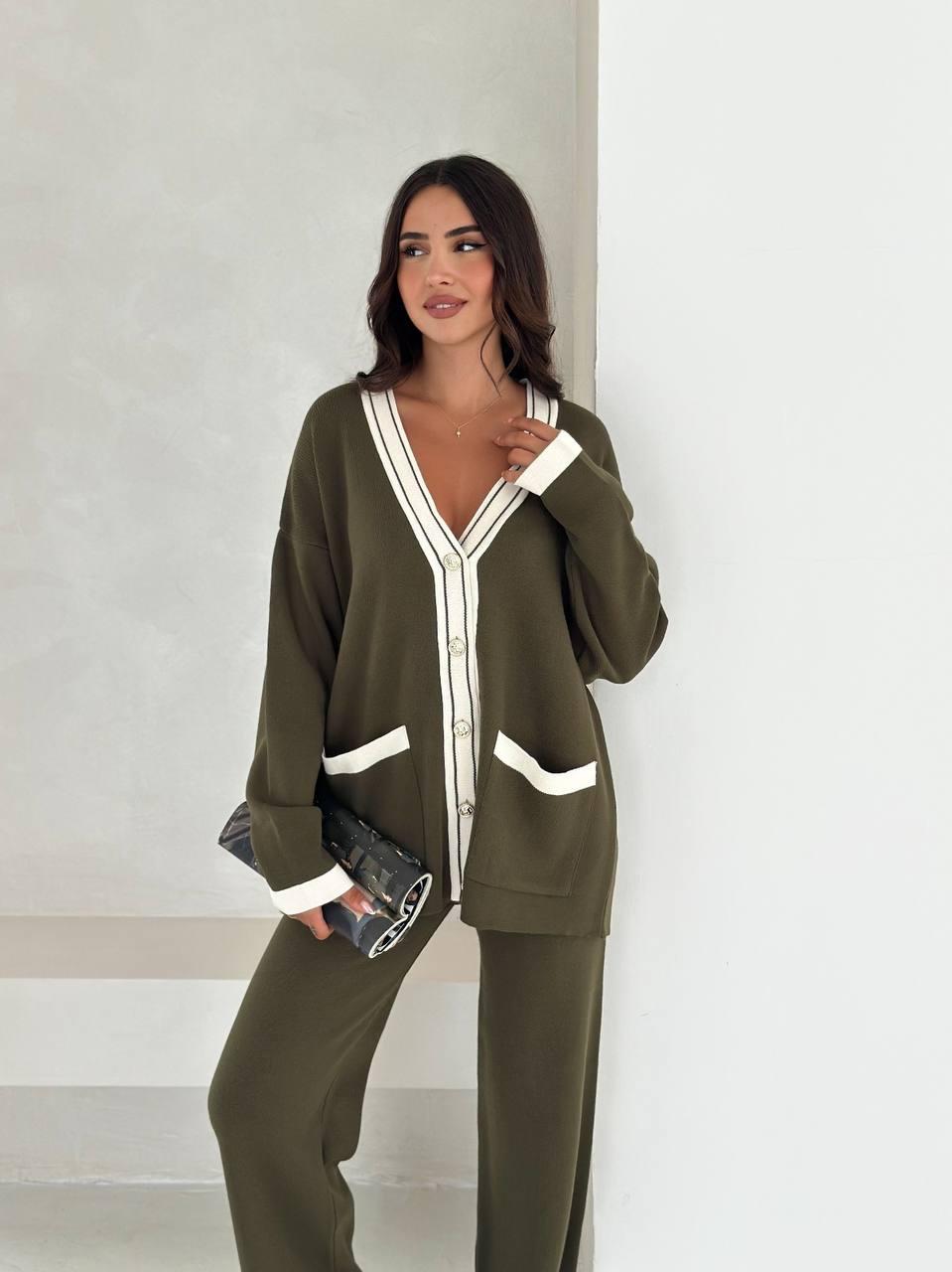 Жіночий Костюм Хакі Вільного Крою з Окантовкою – Комплект Кардиган Штани