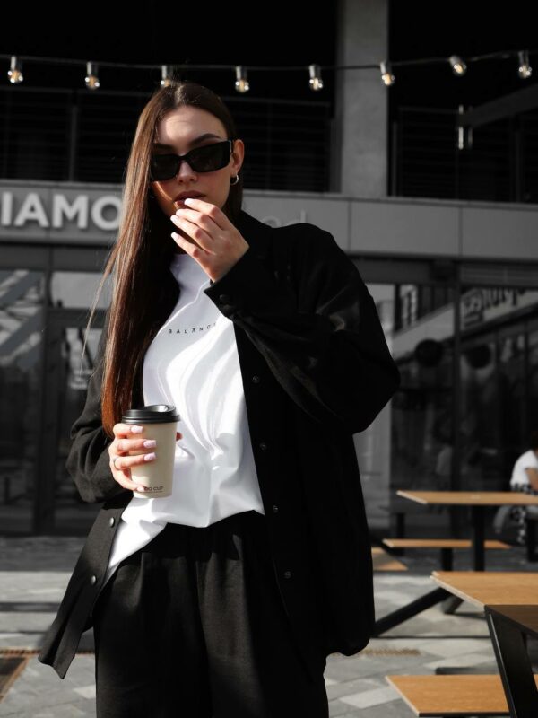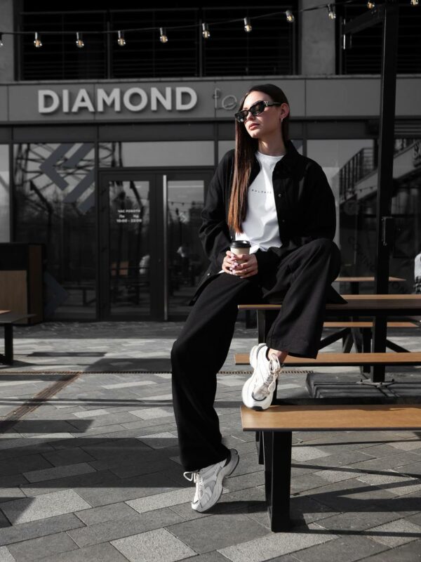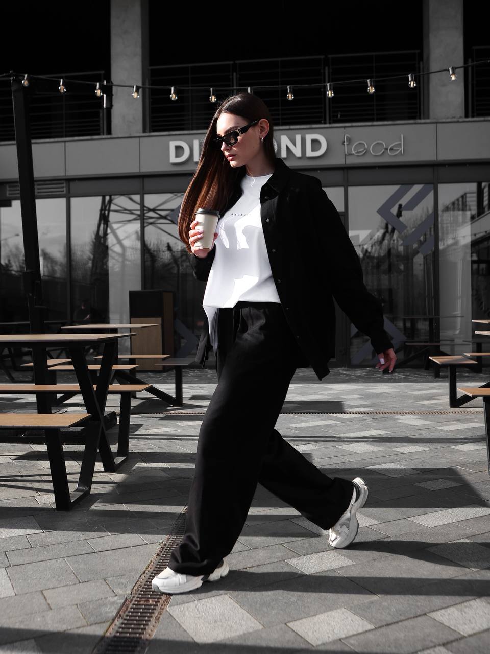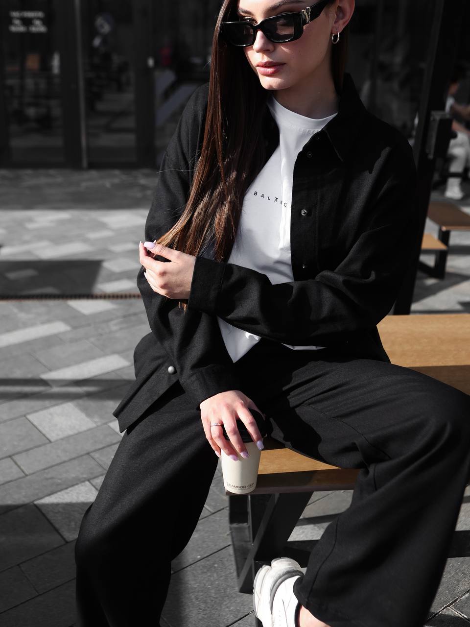 Жіночий Легкий Лляний Чорний Костюм Вільного Крою (Сорочка + Штани)