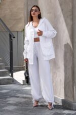 Жіночий Легкий Мусліновий Білий Костюм Вільного Крою із Зав’язками – Сорочка + Штани