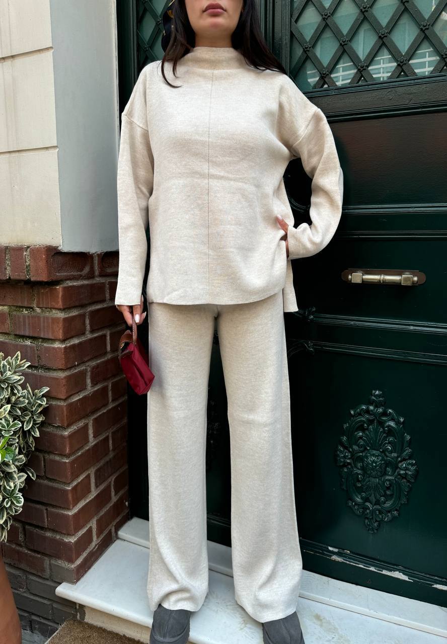 Жіночий Трикотажний Базовий Бежевий Костюм Вільного Крою – Комплект Светр Штани