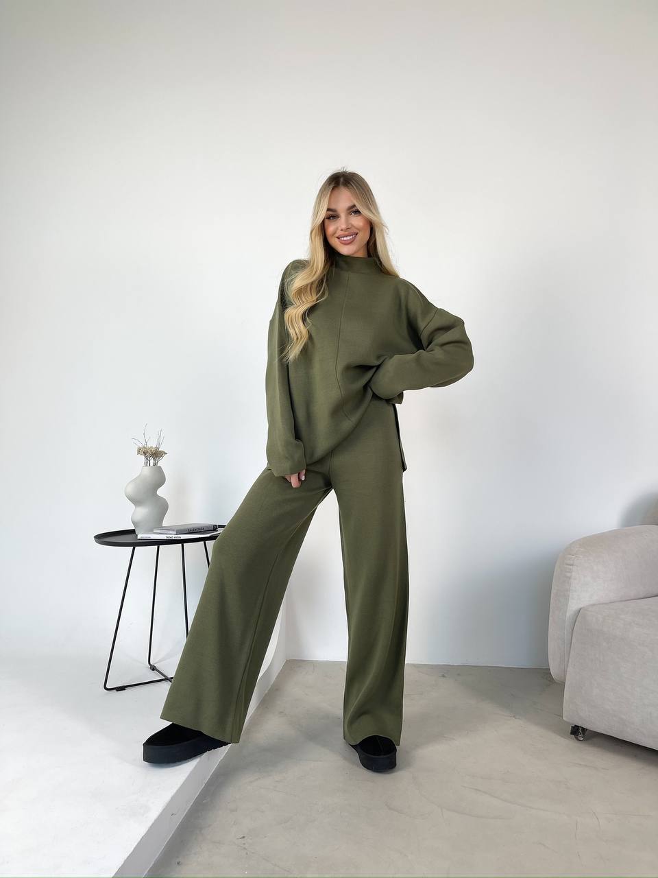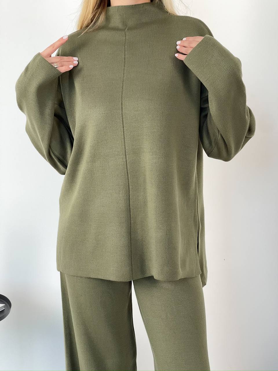 Жіночий Трикотажний Базовий Костюм Хакі Вільного Крою – Комплект Светр Штани