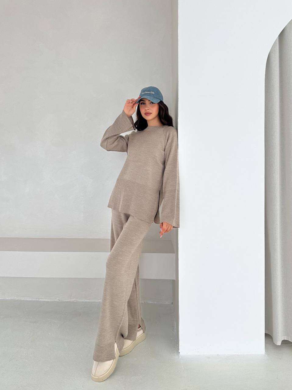 Жіночий Трикотажний Бежевий Костюм Оверсайз – Об’ємний Светр + Широкі Штани