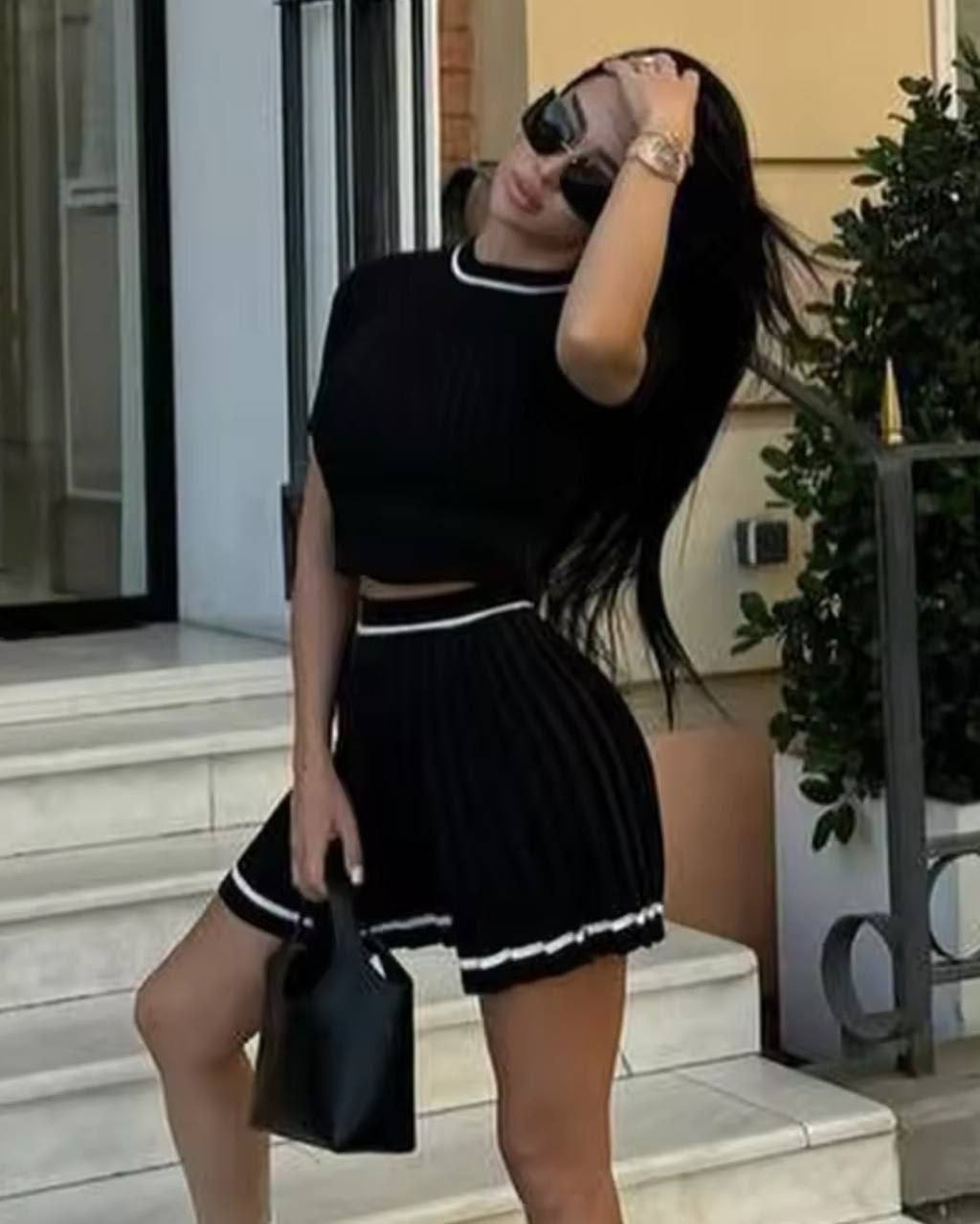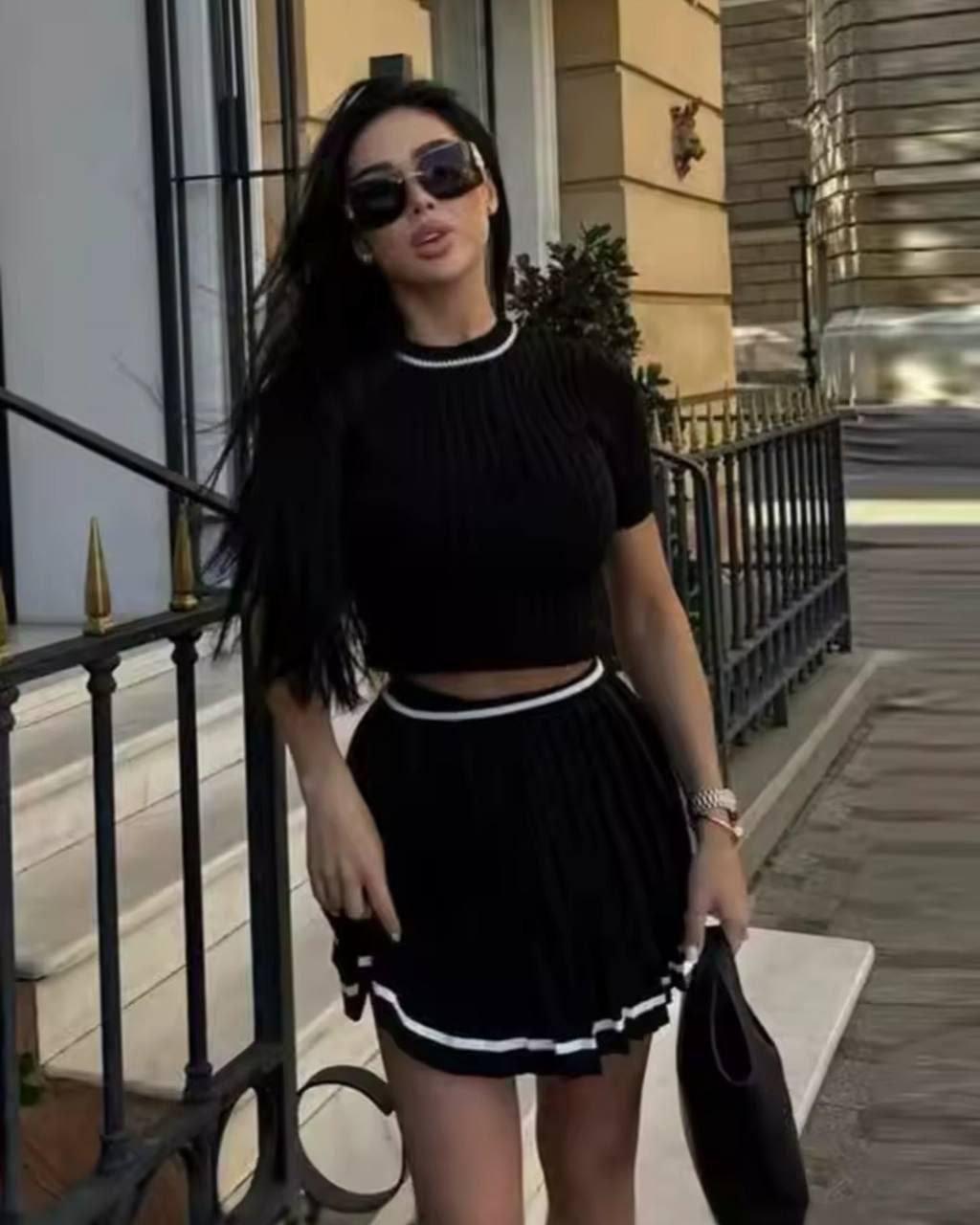 Жіночий Трикотажний Чорний Костюм Двійка з Кантом (Футболка + Спідниця)