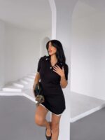 Жіночий Трикотажний Чорний Костюм з Окантовкою – Футболка Поло + Спідниця Міні
