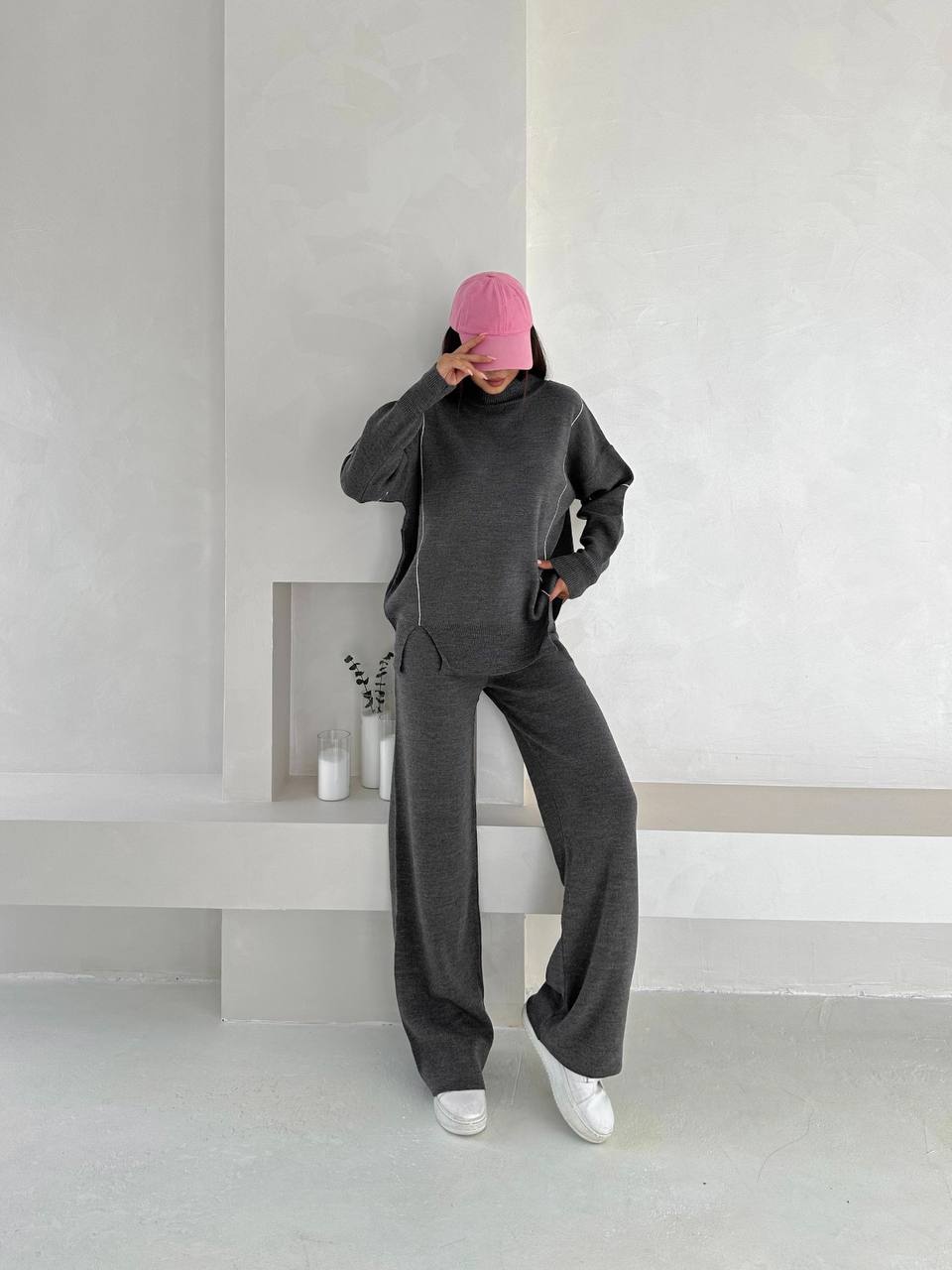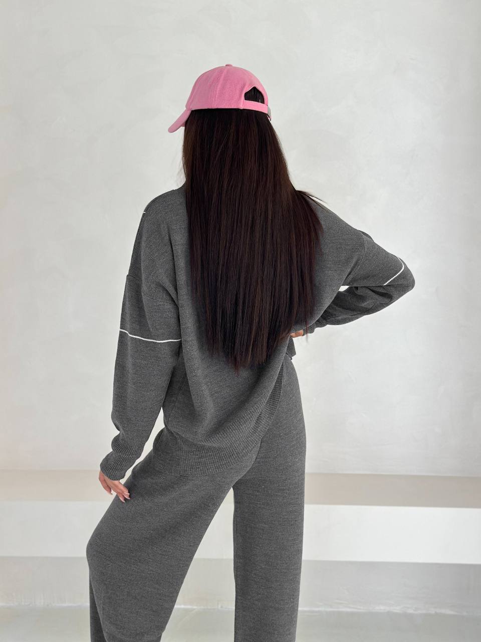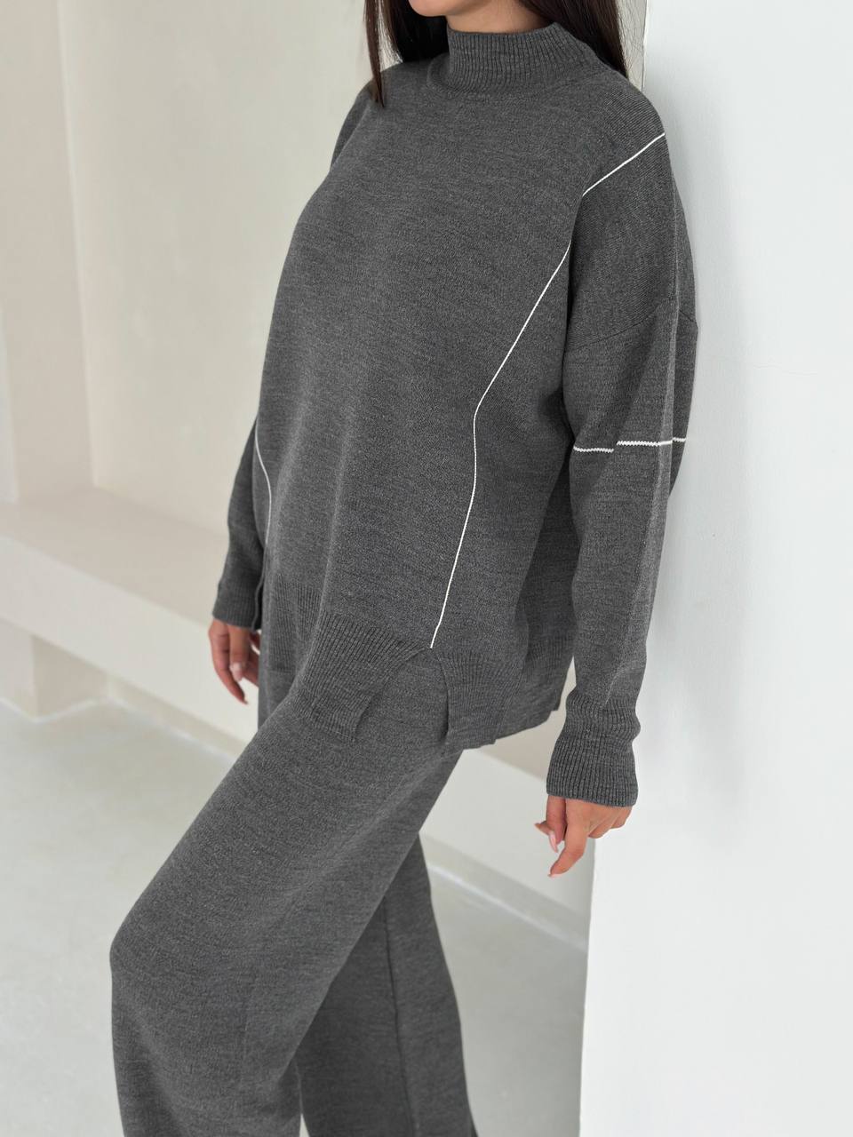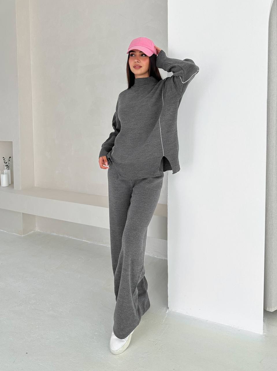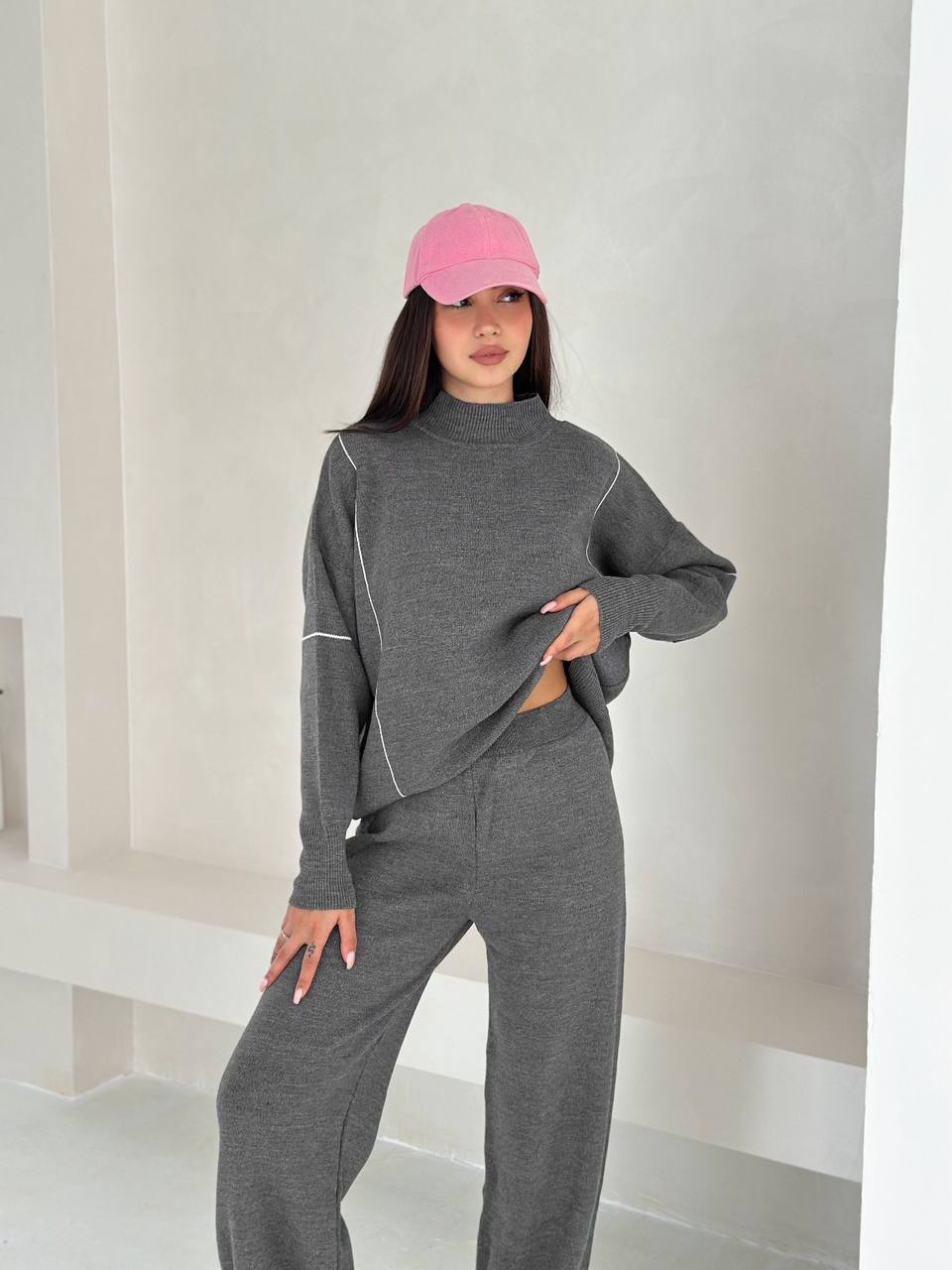Жіночий Трикотажний Сірий Костюм Двійка Оверсайз з Кантом – Светр Вільного Крою + Широкі Штани