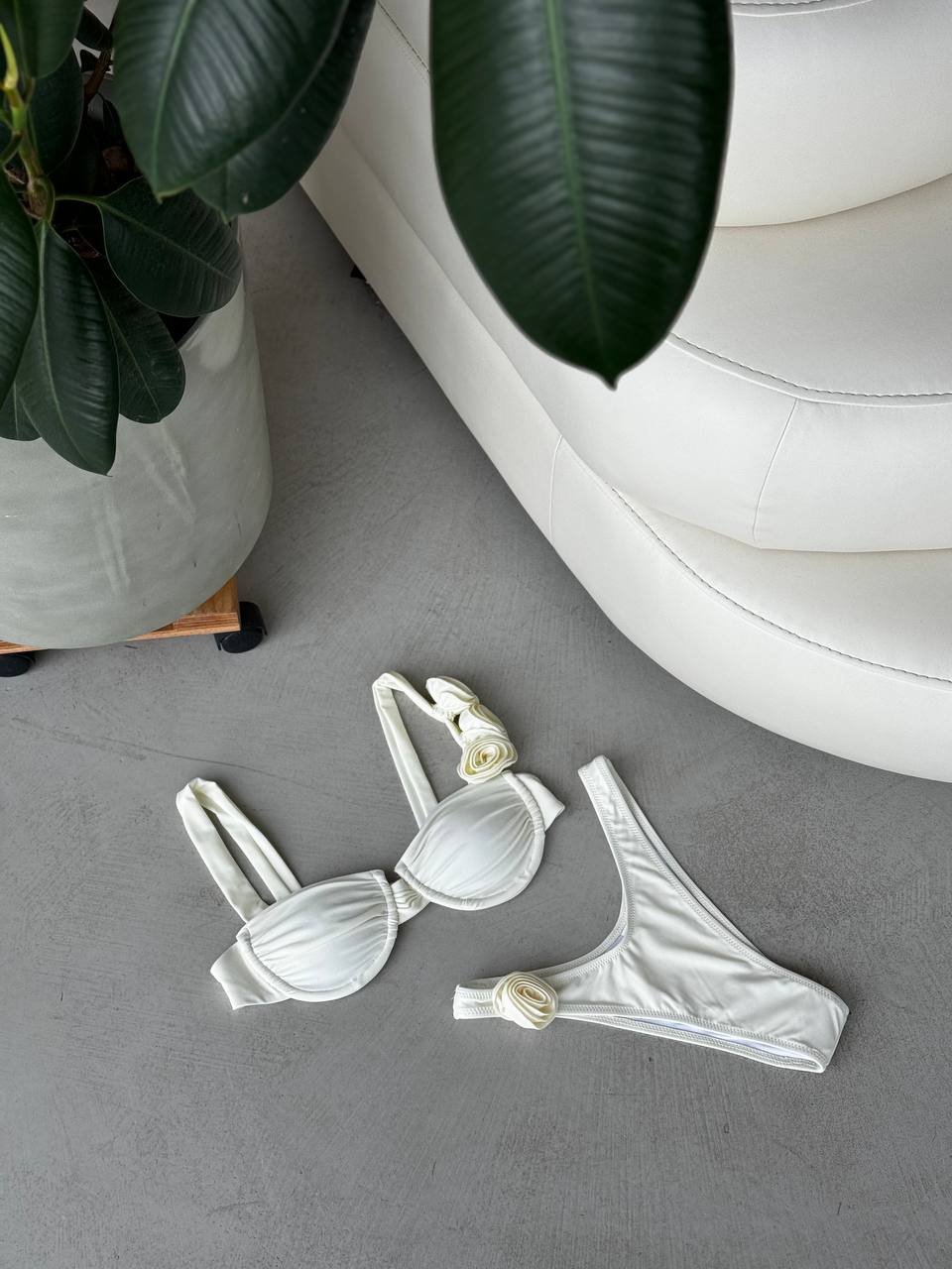 Жіночий Роздільний Білий Купальник з Об’ємними Квітами – Ліф з Чашечками + Трусики Бразиліана