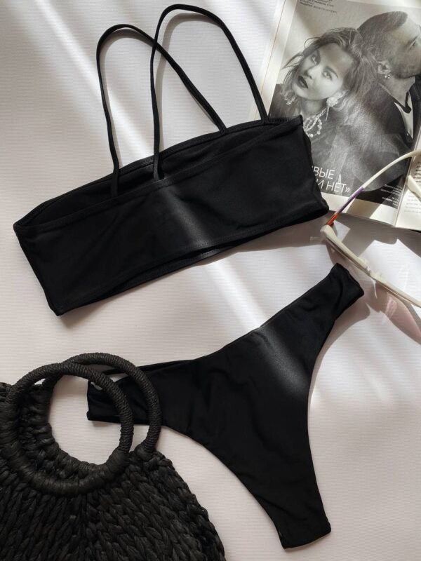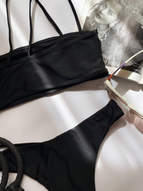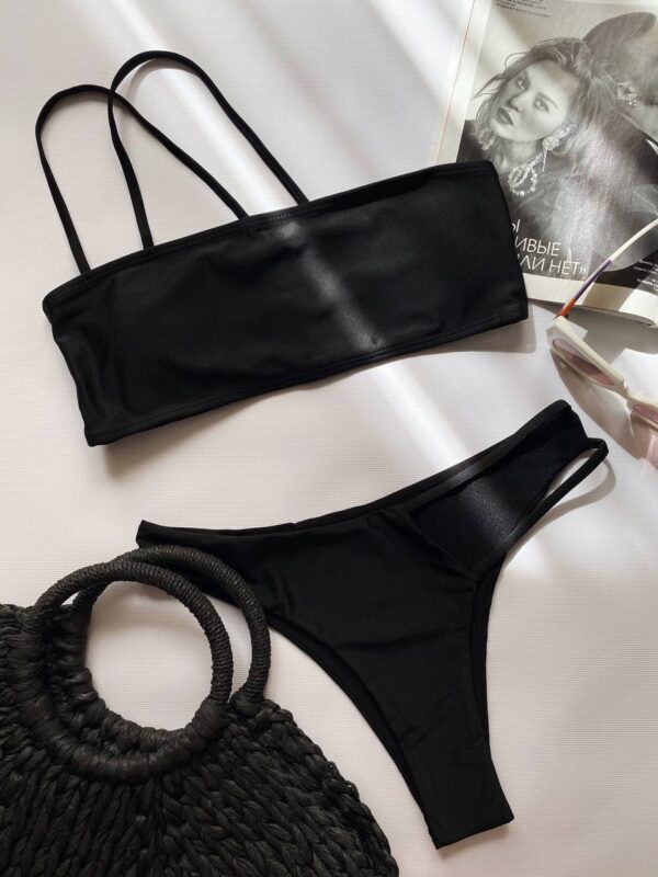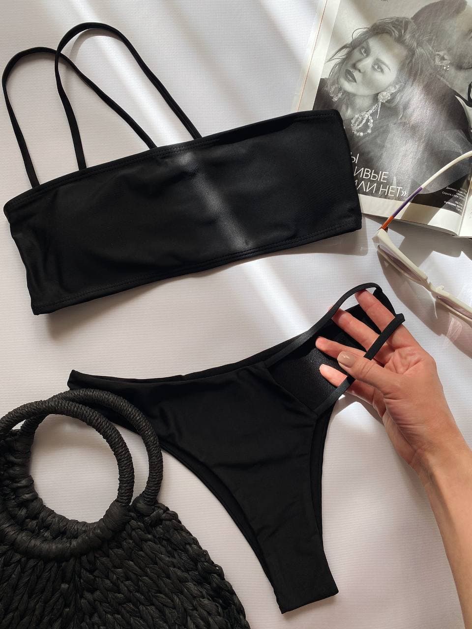 Жіночий Купальник Чорний – Висока Посадка на Бретелях на Одне Плечі