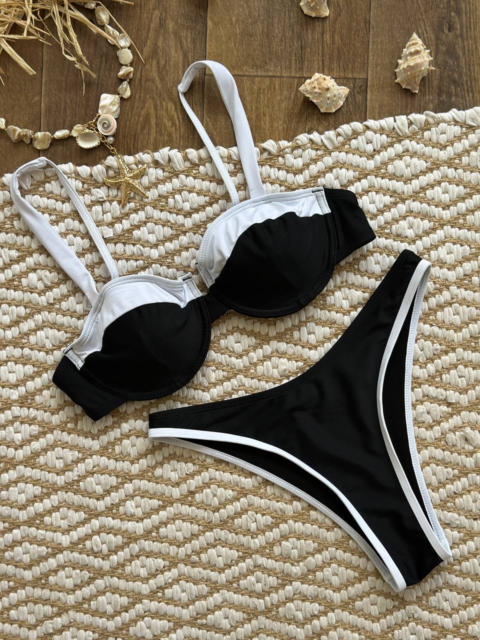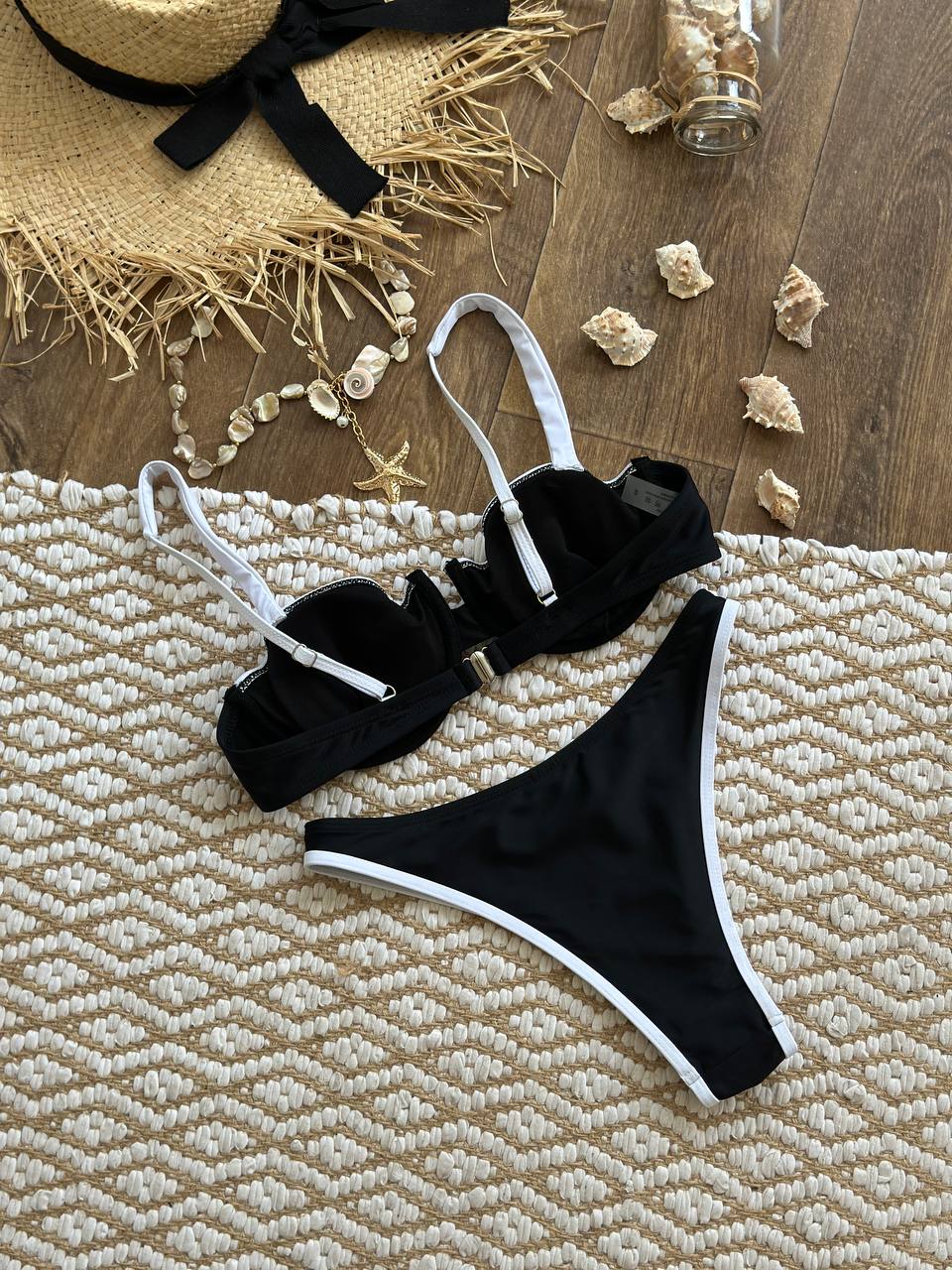 Жіночий Роздільний Чорно-Білий Купальник на Застібці з Чашечками