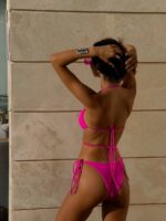 Жіночий Роздільний Рожевий Купальник Трикутник – Базовий Однотонний із Зав’язками