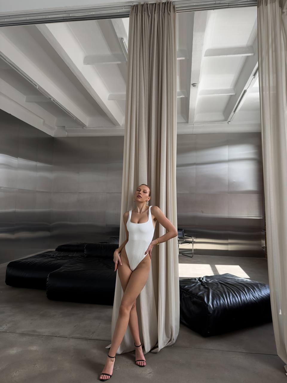 Жіночий Суцільний Фактурний Білий Купальник з Вирізом на Спині