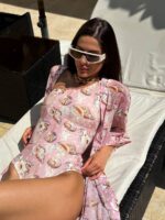 Жіночий Суцільний Рожевий Купальник На Одне Плече В Принт Черепашках.