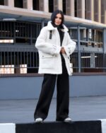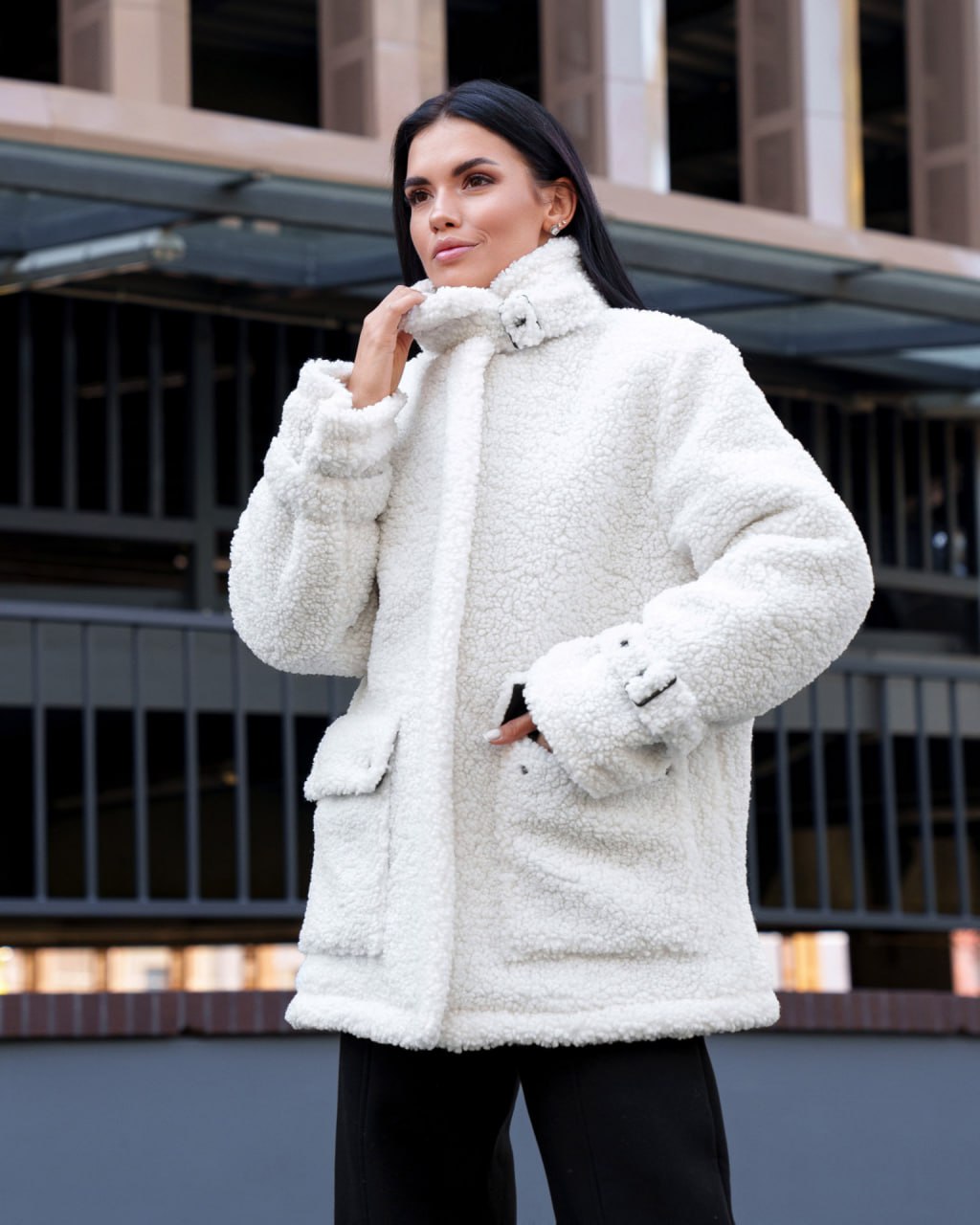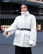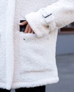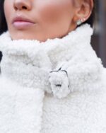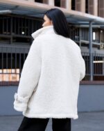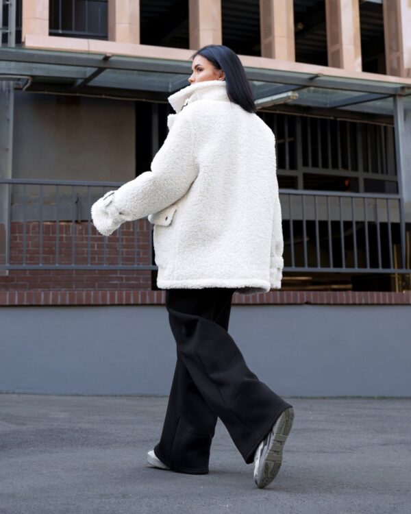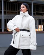 Жіноча Біла Шуба Мірабель Тедді Баранець на Утеплювачі з Високим Коміром