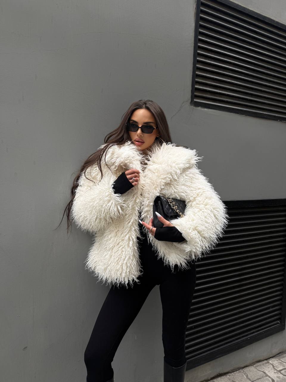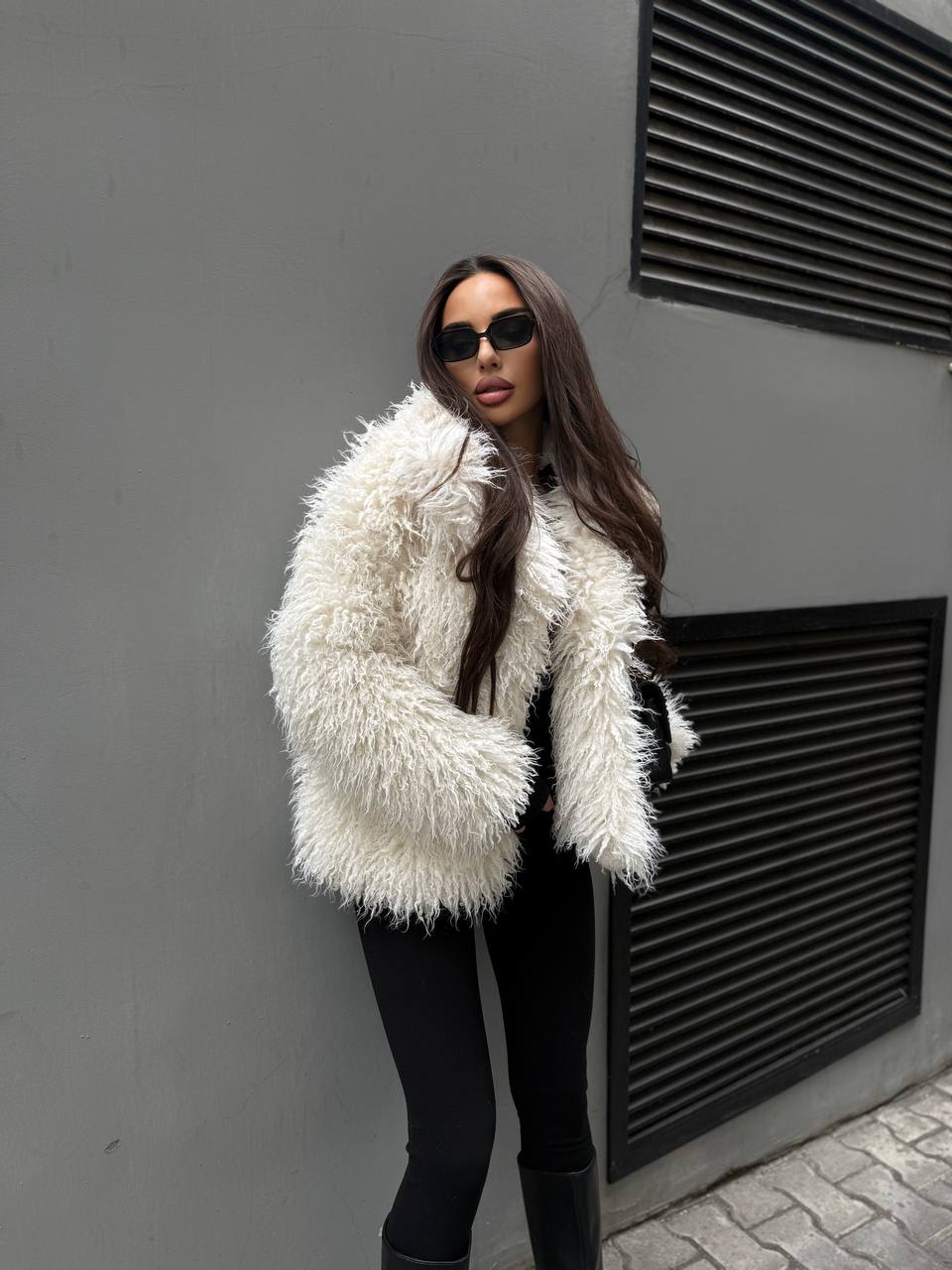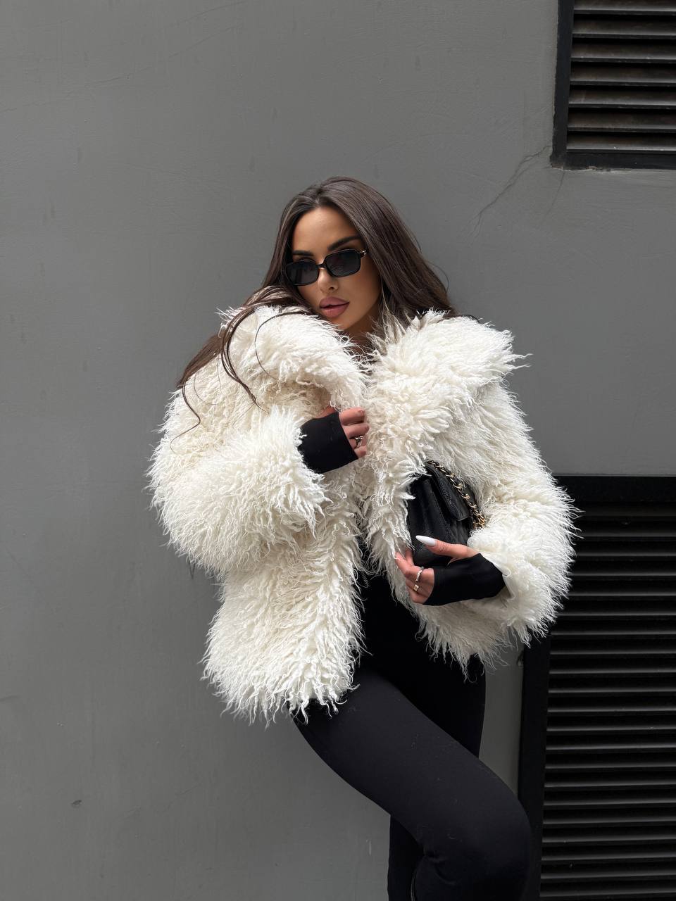 Жіноча Об’ємна Пухнаста Кучерява Біла Шуба під Баранчика