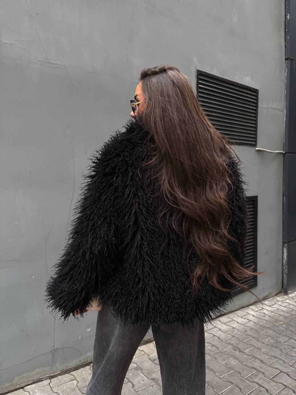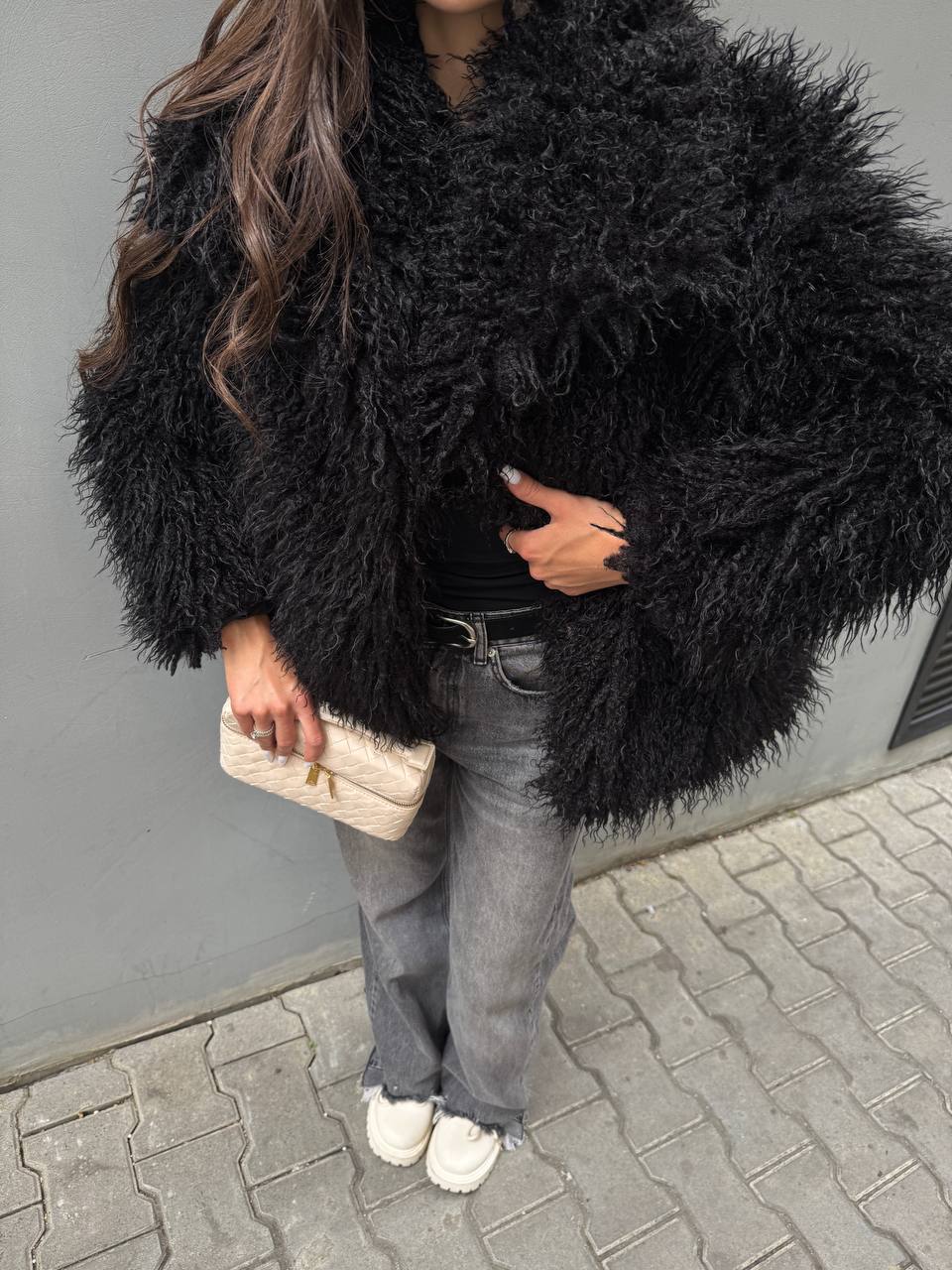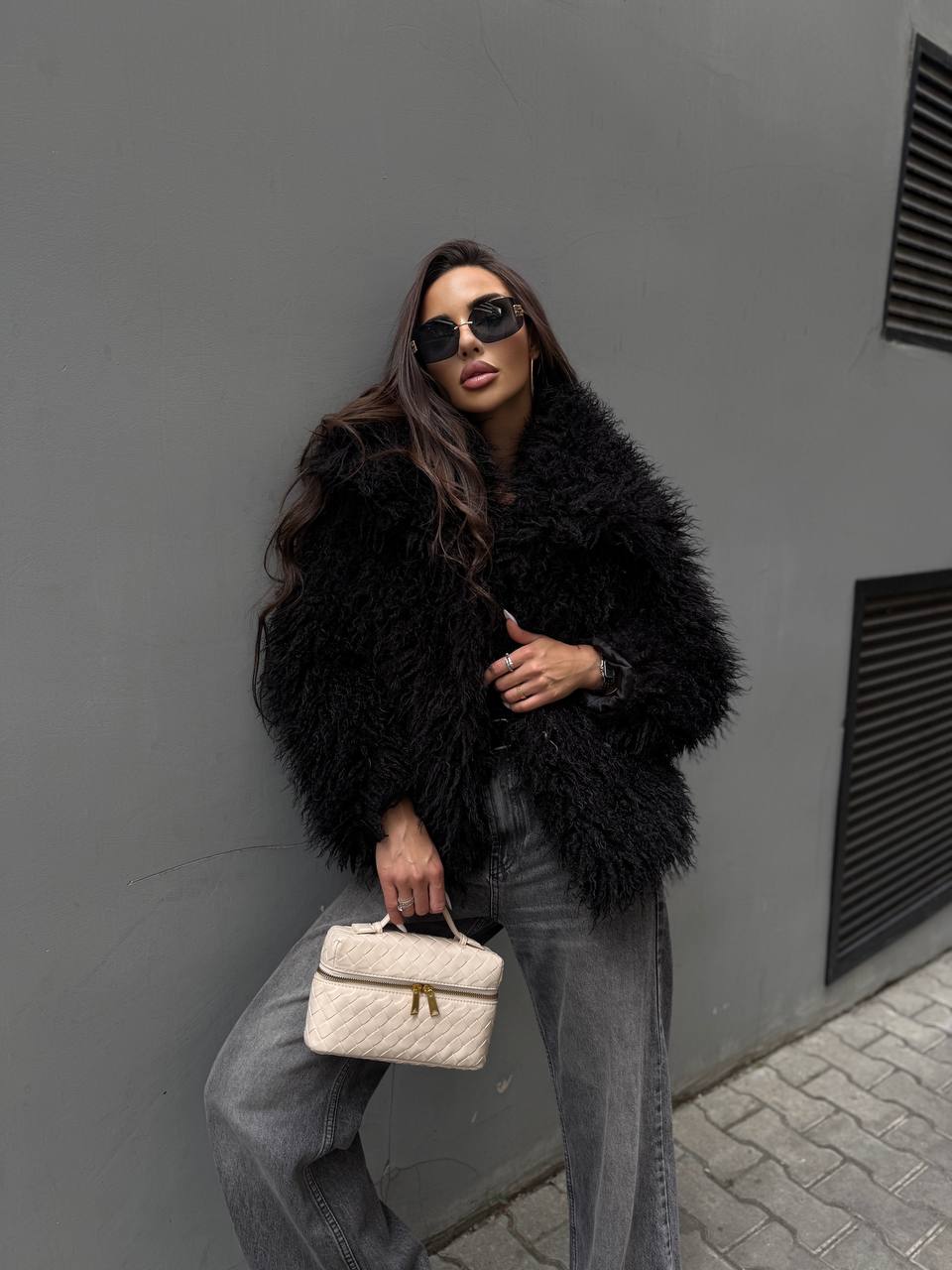 Жіноча Об’ємна Пухнаста Кучерява Чорна Шуба під Баранчика