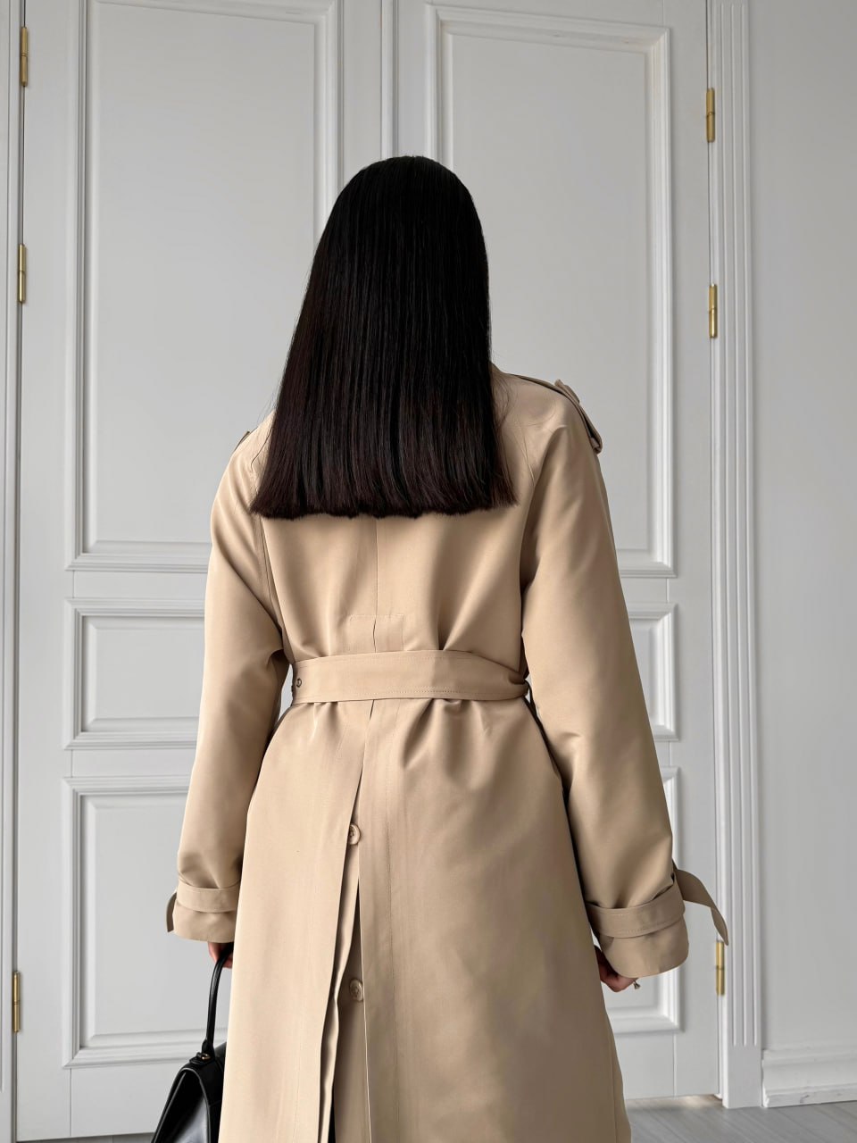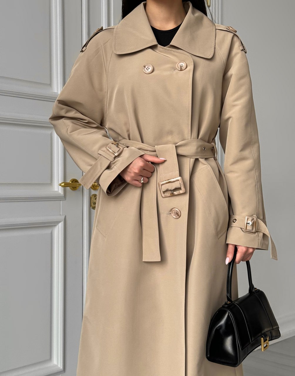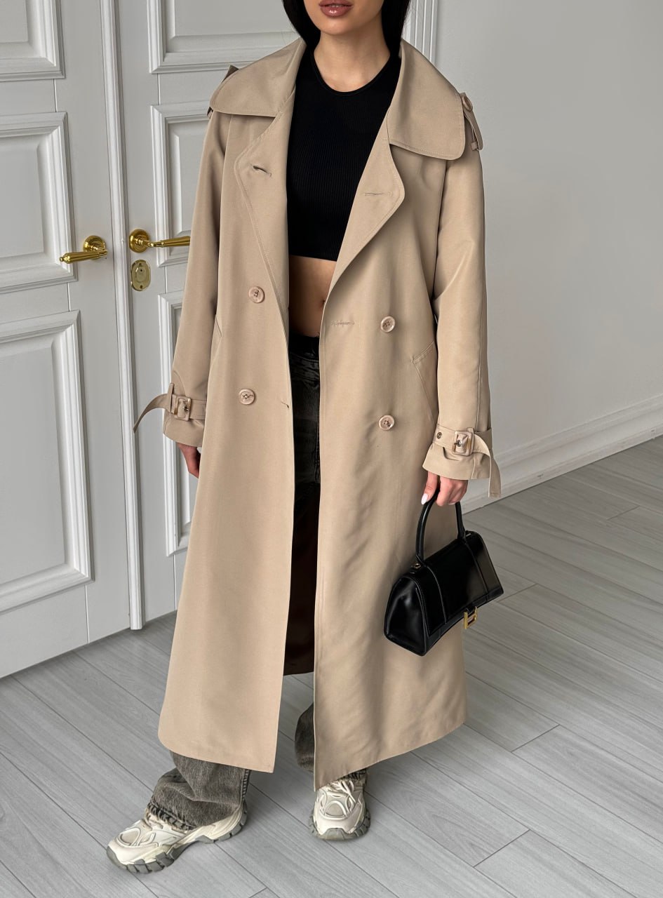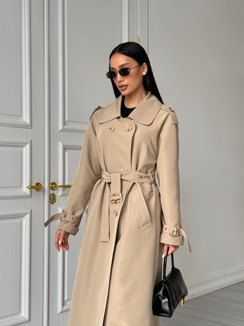 Жіночий Довгий Котоновий Бежевий Тренч Хейла Максі з Відкладним Коміром і Поясом