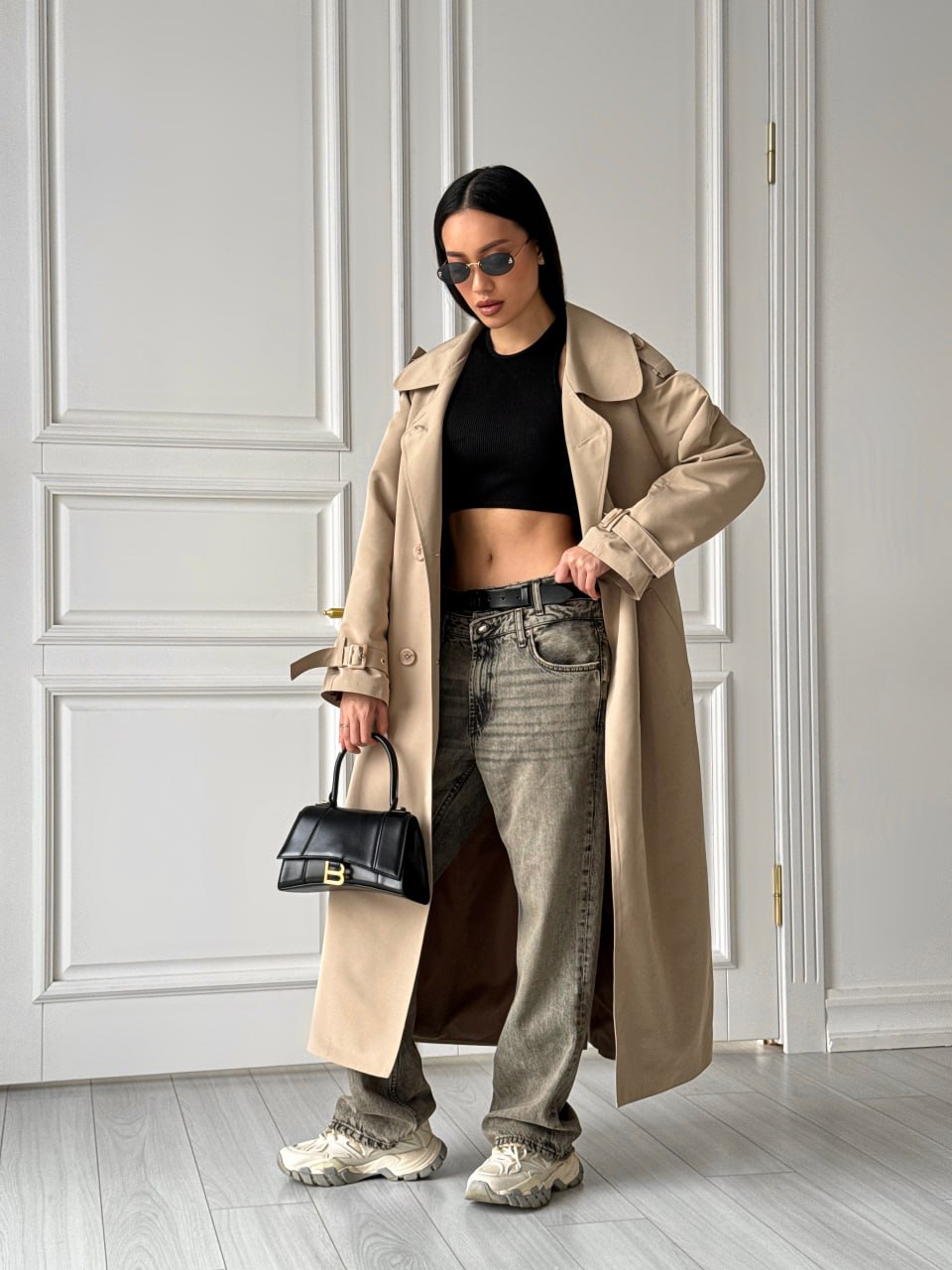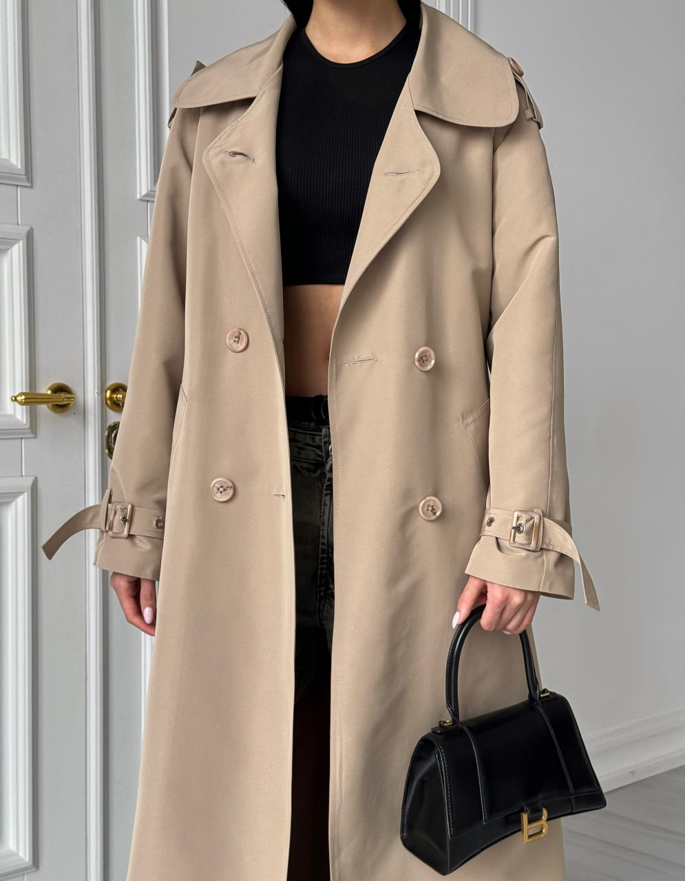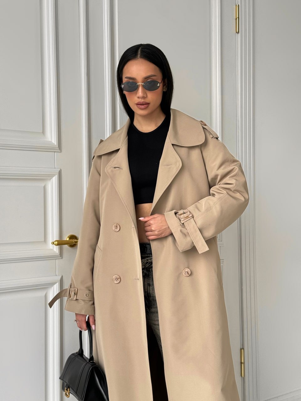 Жіночий Довгий Котоновий Бежевий Тренч Хейла Максі з Відкладним Коміром і Поясом