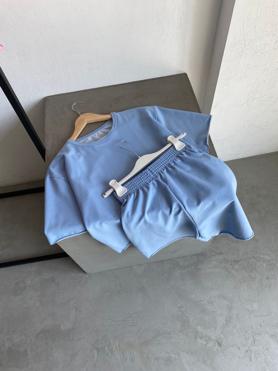 Жіночий Базовий Літній Блакитний Комплект із Обрізаними Краями (Футболка + Шорти)