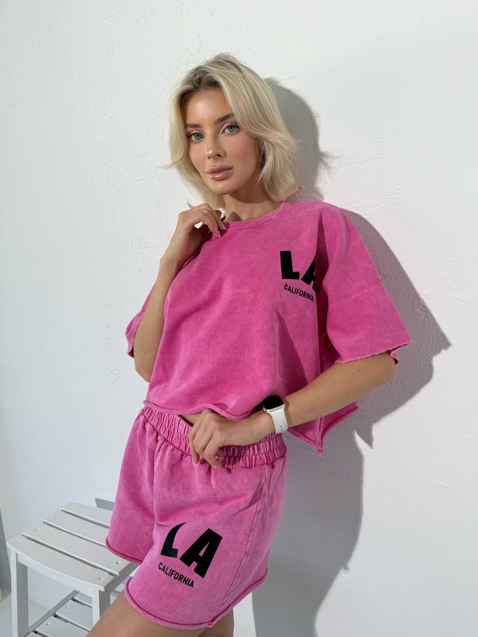 Жіночий Літній Рожевий Костюм Варений Футболка Шорти з Обрізаними Краями