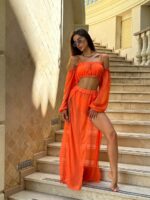 Будьте першим, хто залишив відгук “Жіночий Костюм-Двійка Помаранчевий – Легкий Шифоновий Літній Топ з Об’ємними Рукавами і Спідниця Довга з Розрізами”“ Скасувати коментар