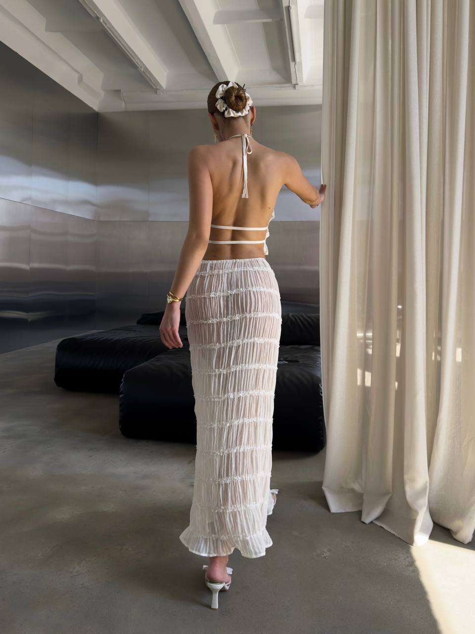 Жіночий Легкий Напівпрозорий Молочний Пляжний Комплект з Відкритою Спиною (Топ + Спідниця)