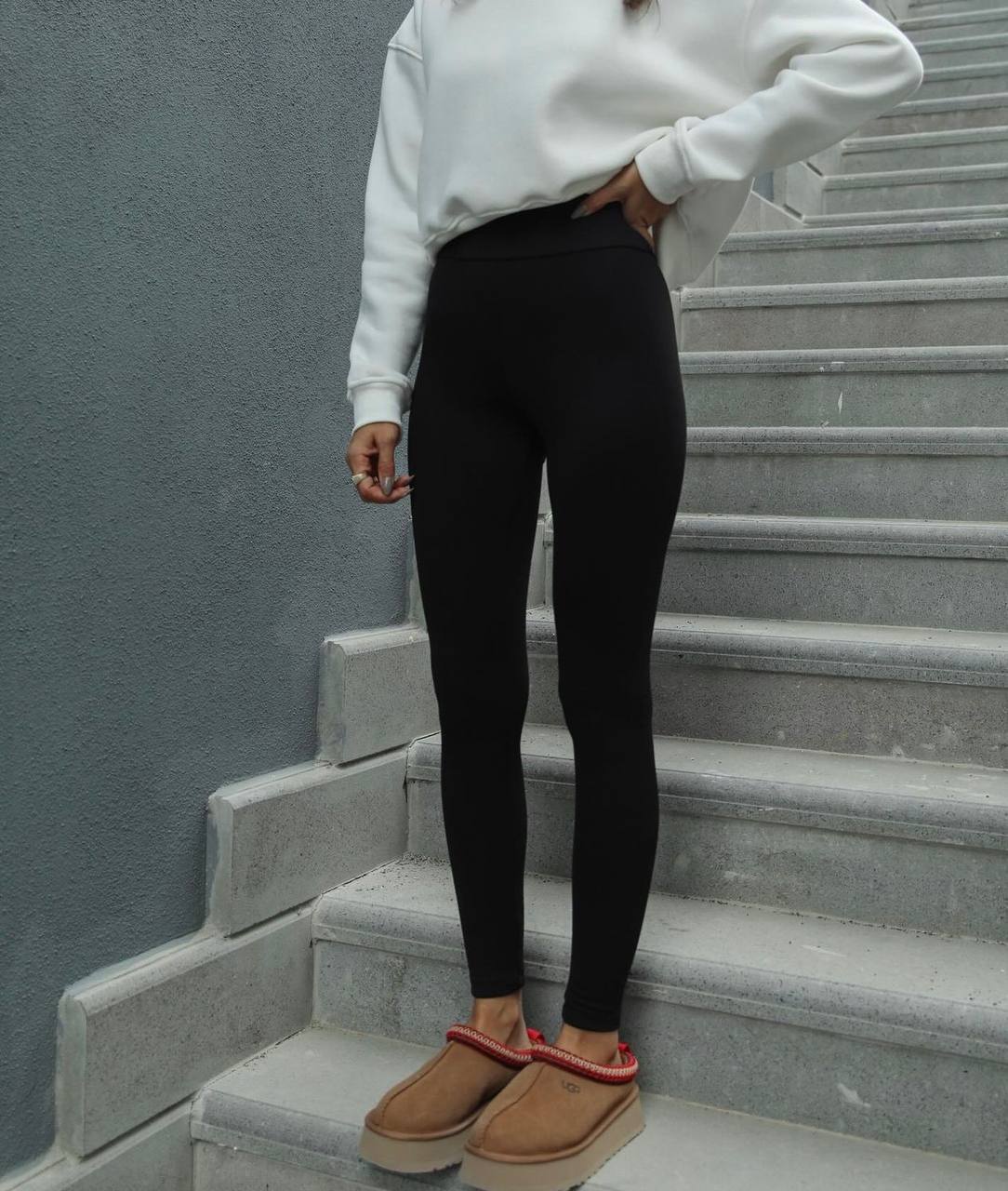 Жіночі Базові Чорні Лосини Легінси в Рубчик – Утеплені на Флісі