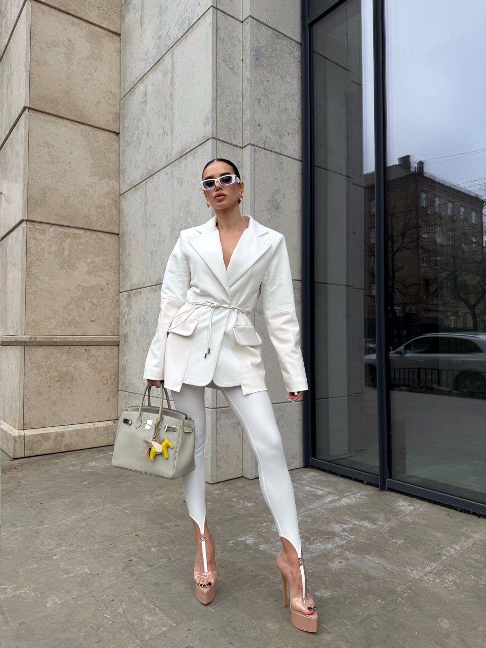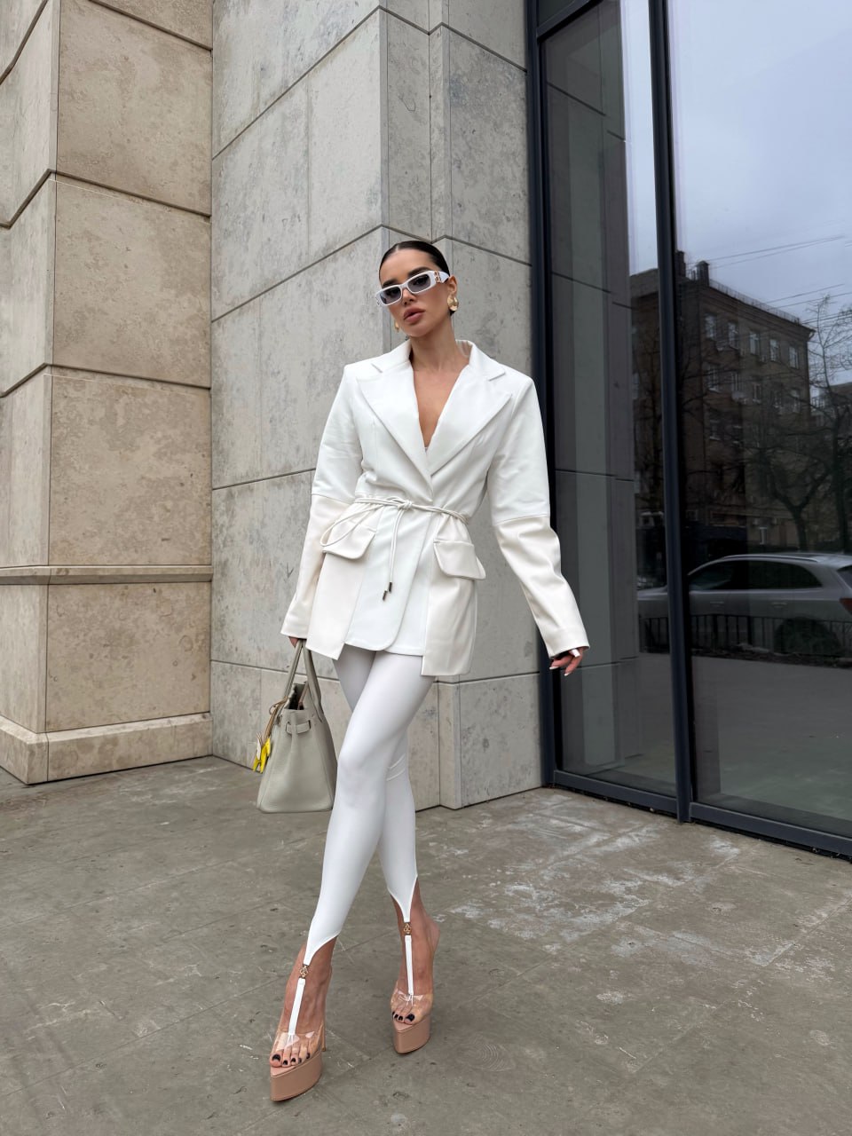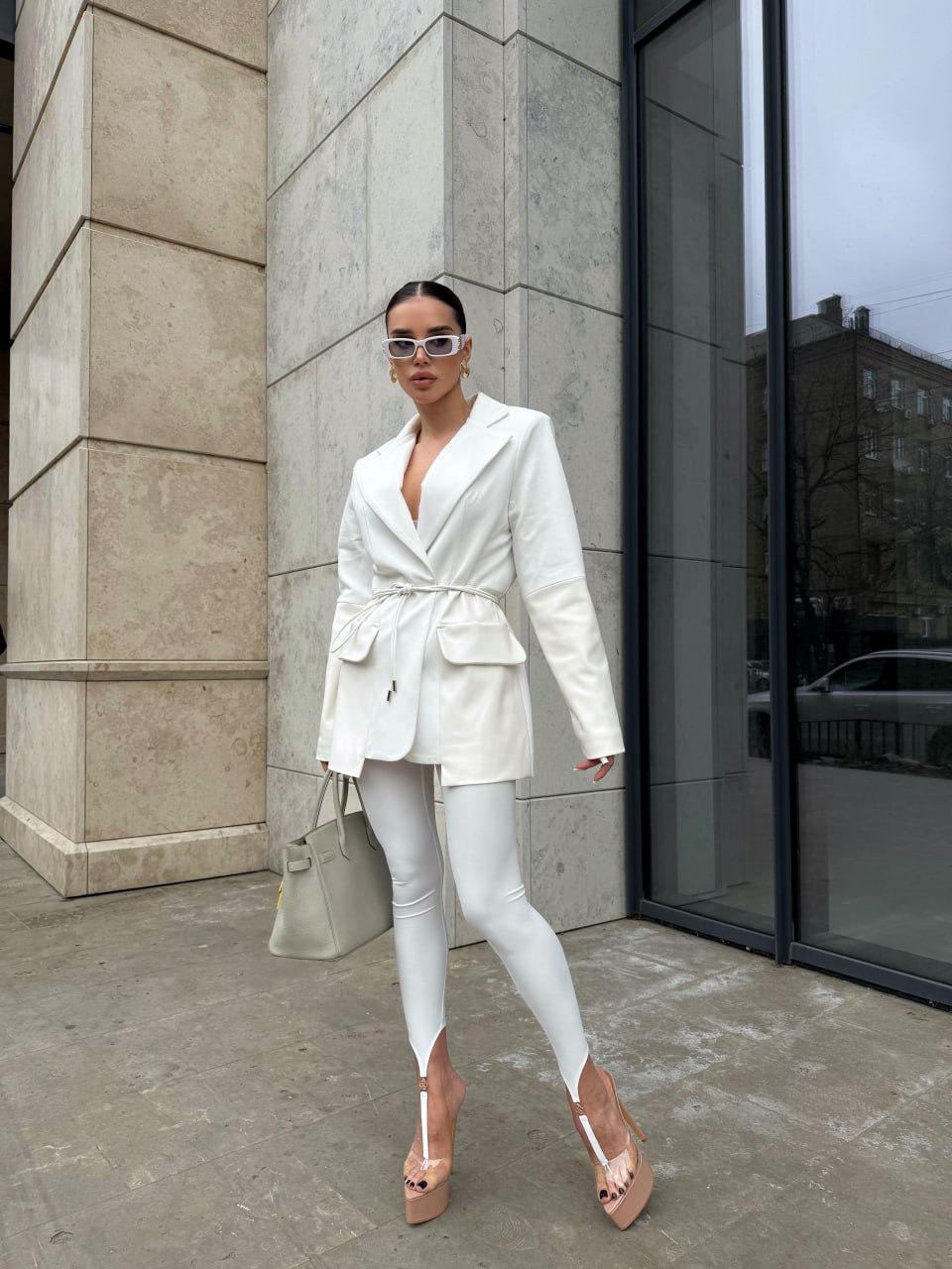 Жіночі Білі Легінси Мікс з Фігурними Штрипками