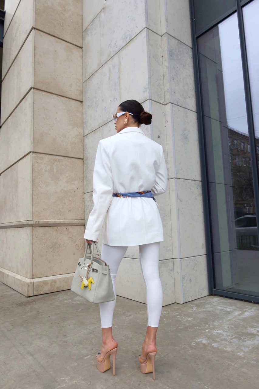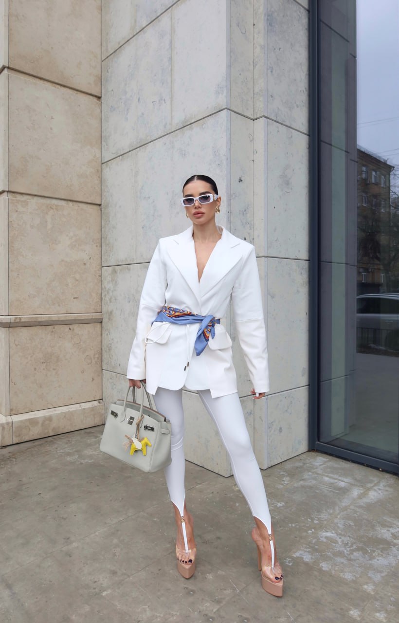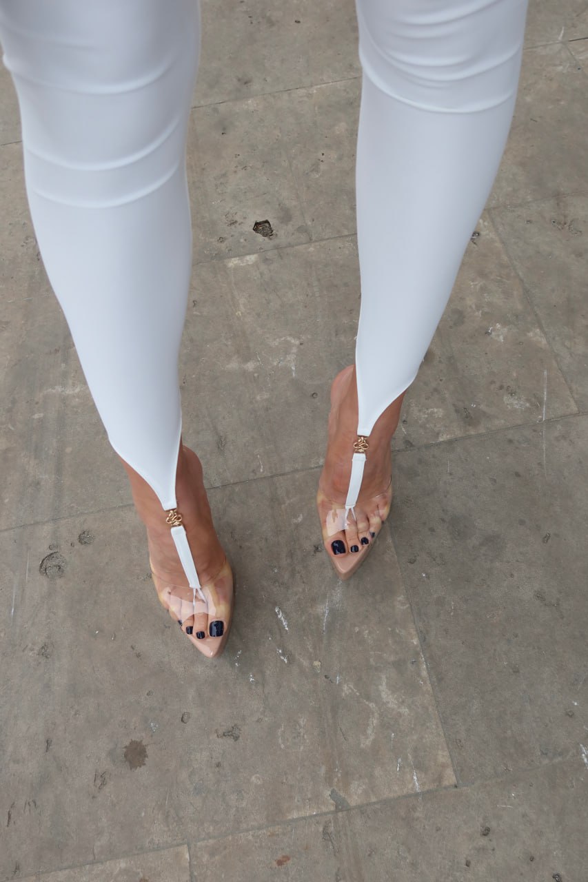 Жіночі Білі Легінси Мікс з Фігурними Штрипками