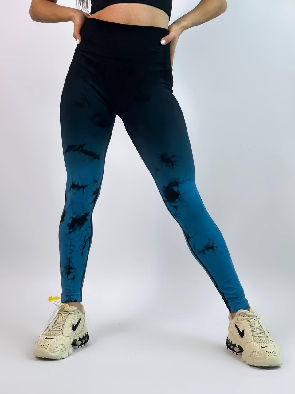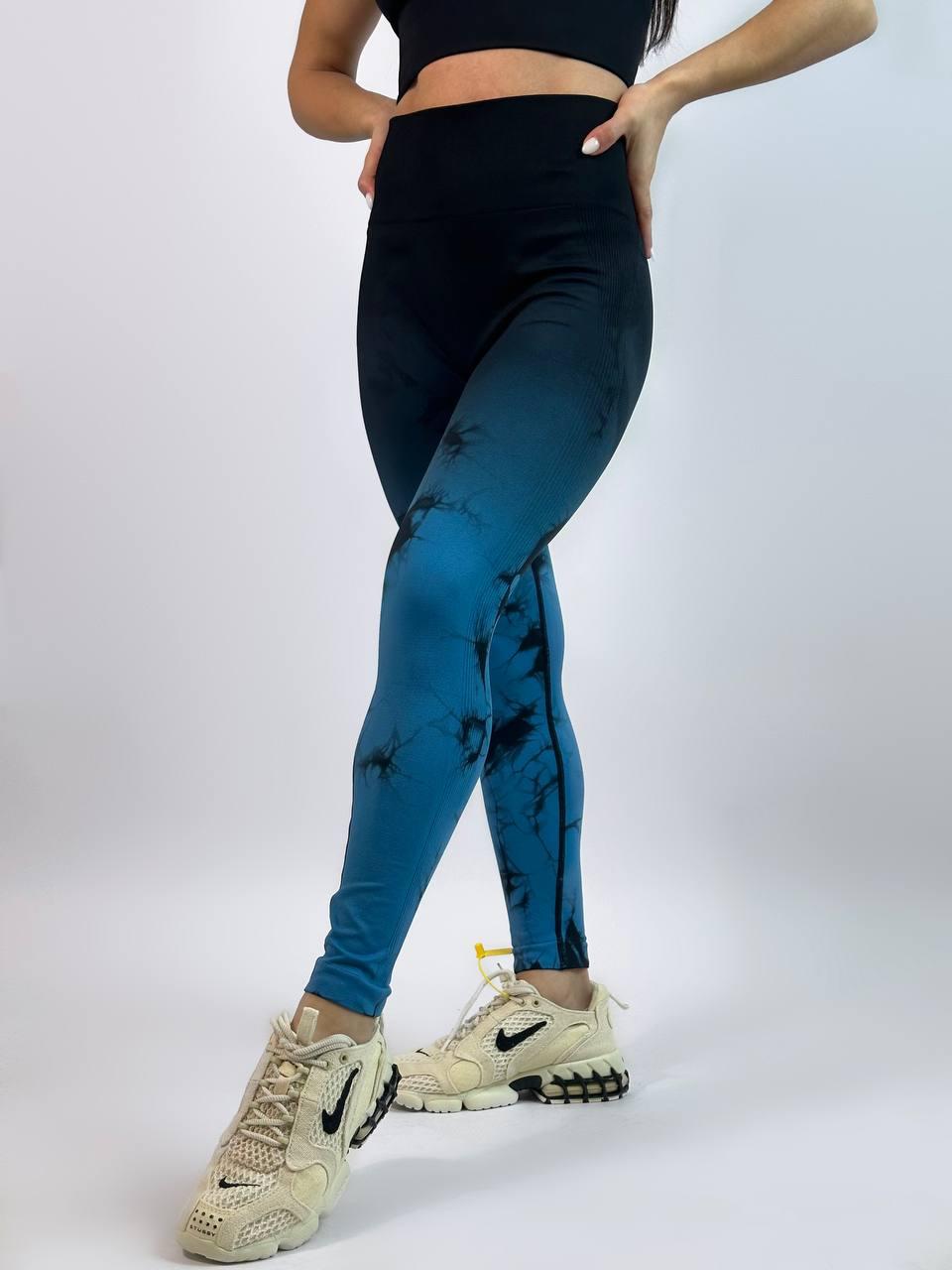 Жіночі Гладкі Сині Лосіни Градієнт з Push Up Ефектом та Мармуровим Принтом