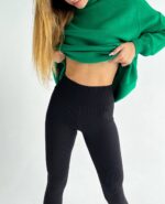 Жіночі Утеплені Чорні Лосини в Рубчик – Базові з Високою Посадкою