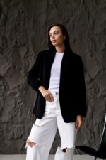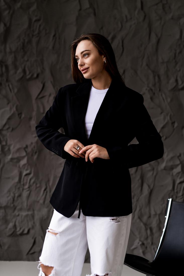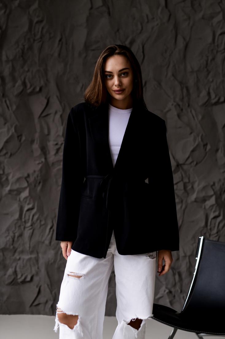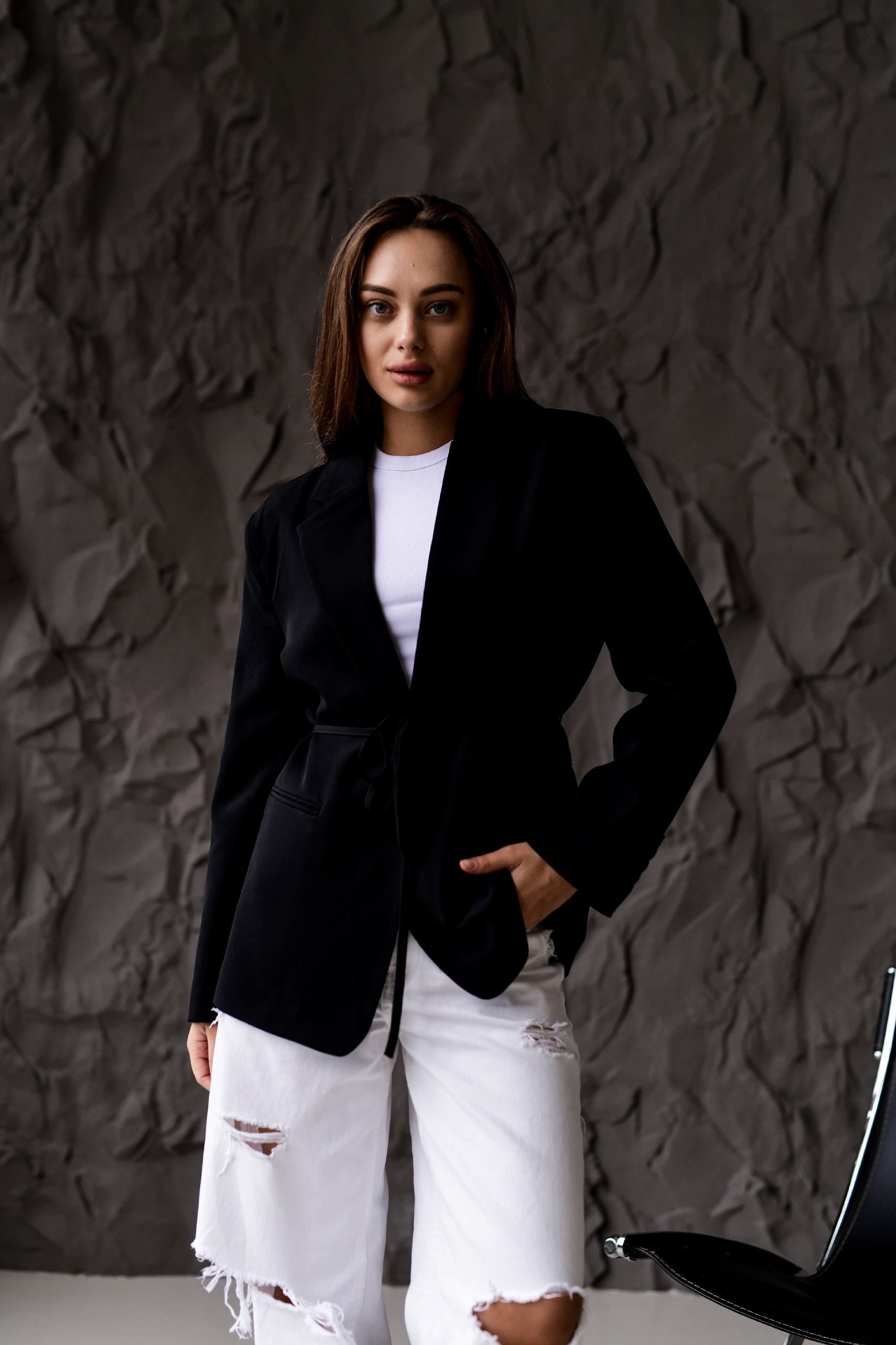 Жіночий Чорний Піджак Жакет – Класичний з Пояском