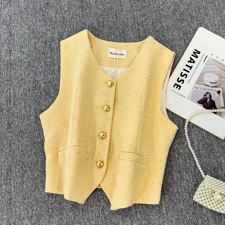 Жіночий Жовтий Жилет на Золотистих Ґудзиках з Камінцями Стразами