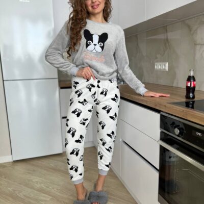 Жіноча Плюшева Темно-Рожева Піжама з Вишивкою на Груді – Кофта + Шорти