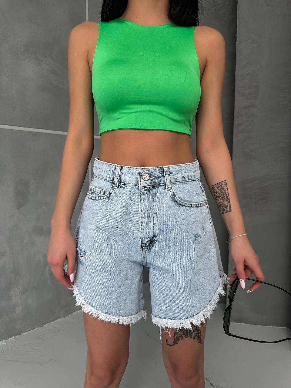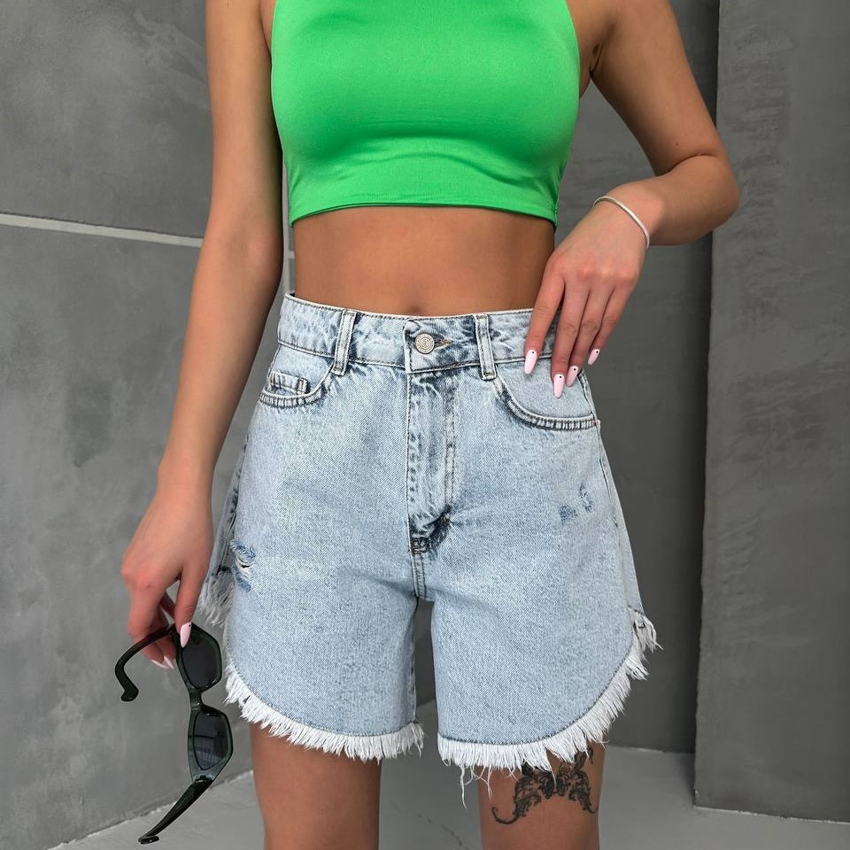 Жіночі Блакитні Рвані Джинсові Шорти Варені з Бахромою