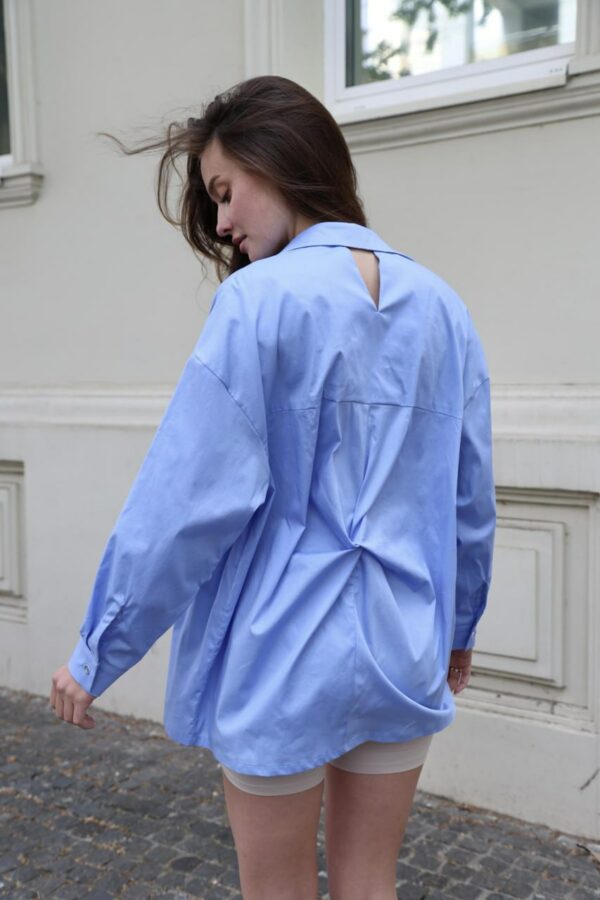 Жіноча Базова Блакитна Сорочка Вільного Крою з Вирізом на Спині