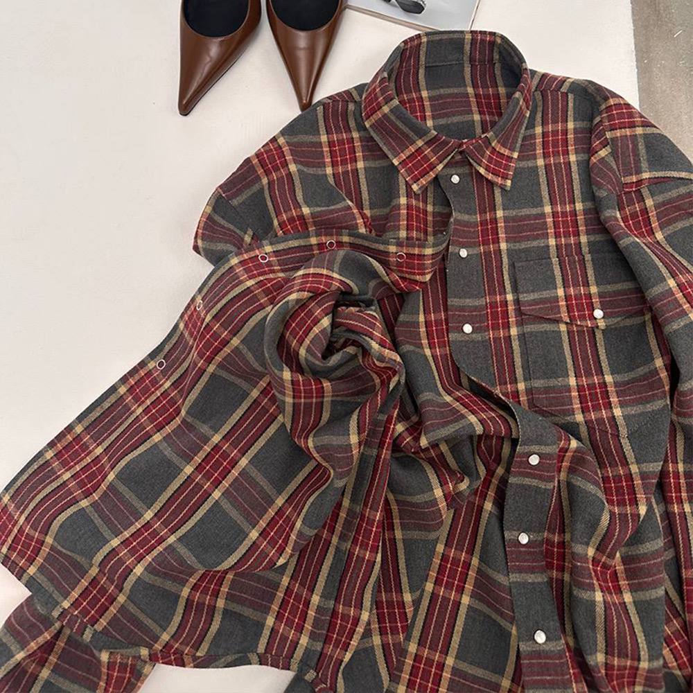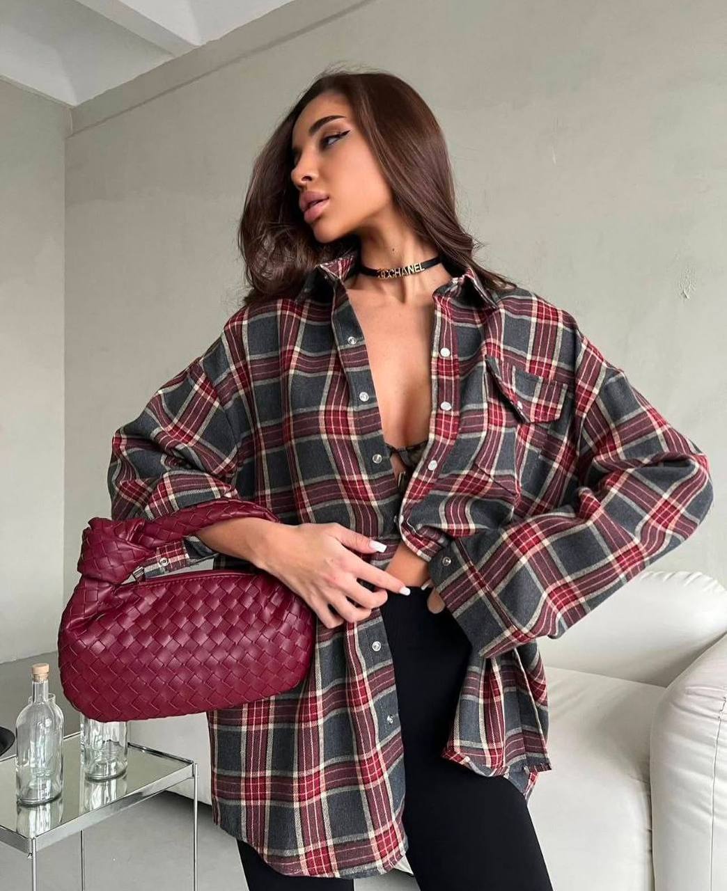 Жіноча Об’ємна Байкова Графітова Сорочка Оверсайз в Клітинку