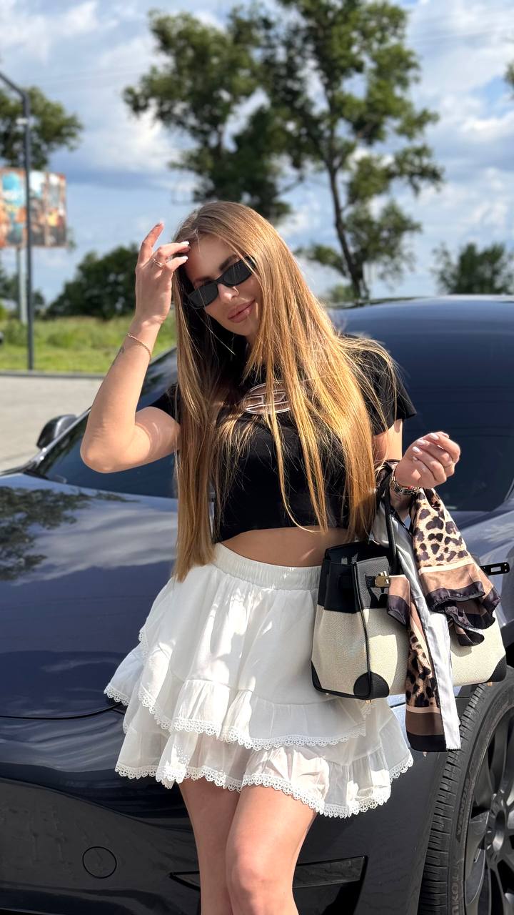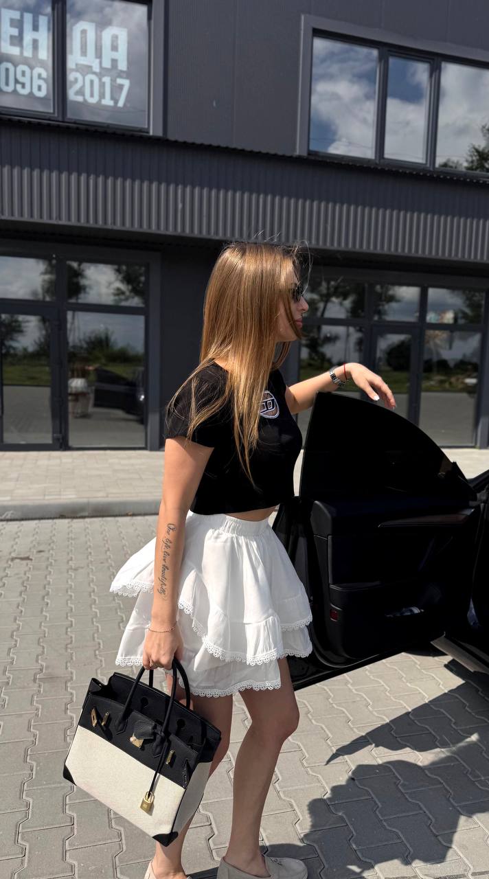 Жіноча Біла Спідниця Міні з Рюшами та Мереживом + Підкладка Шортиками