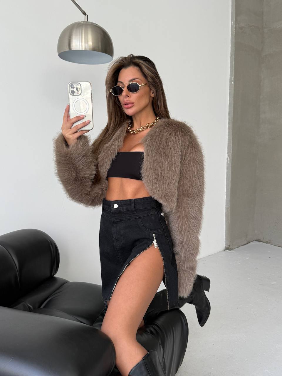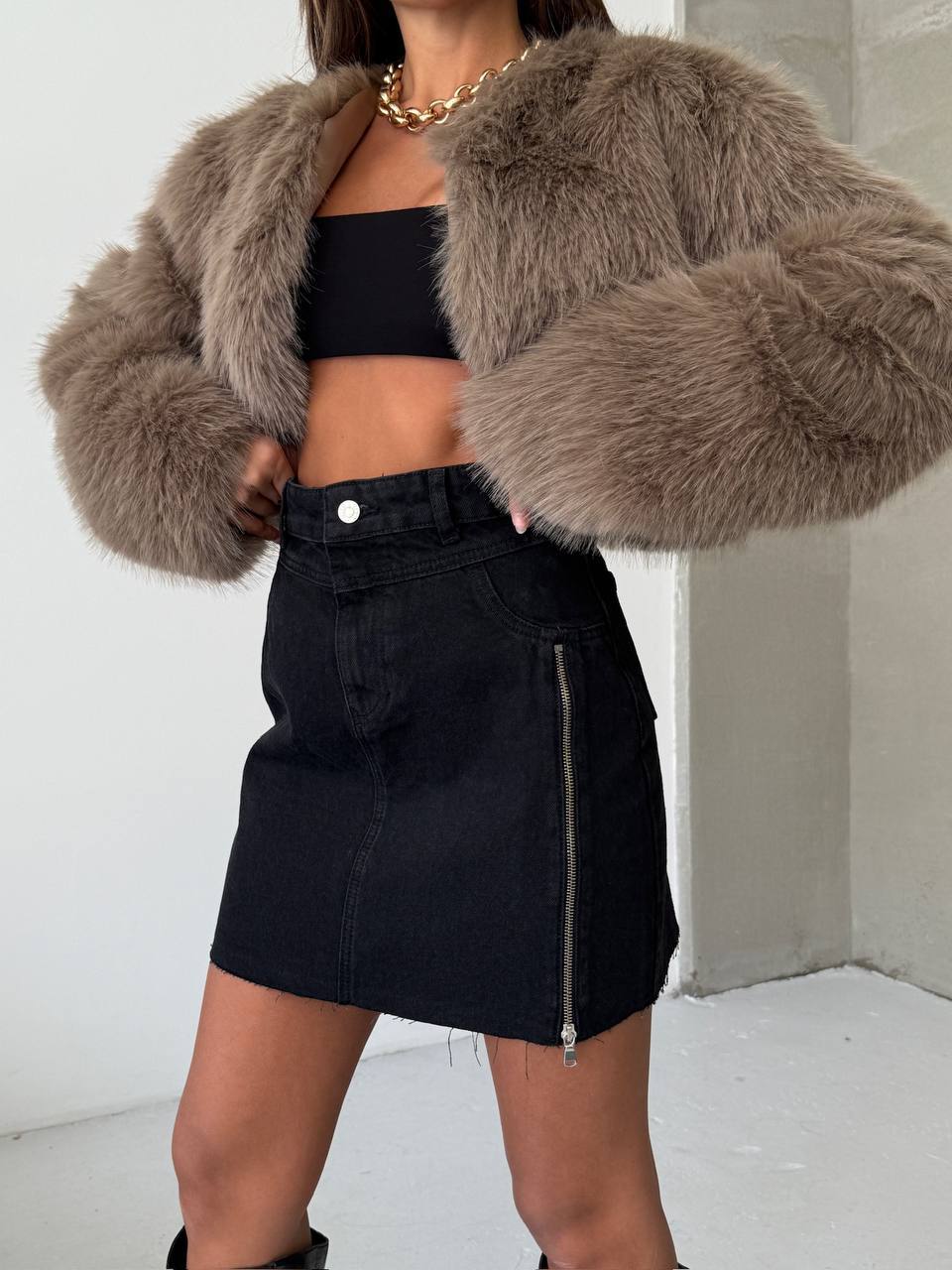 Жіноча Чорна Джинсова Спідниця Міні зі Змійкою Збоку