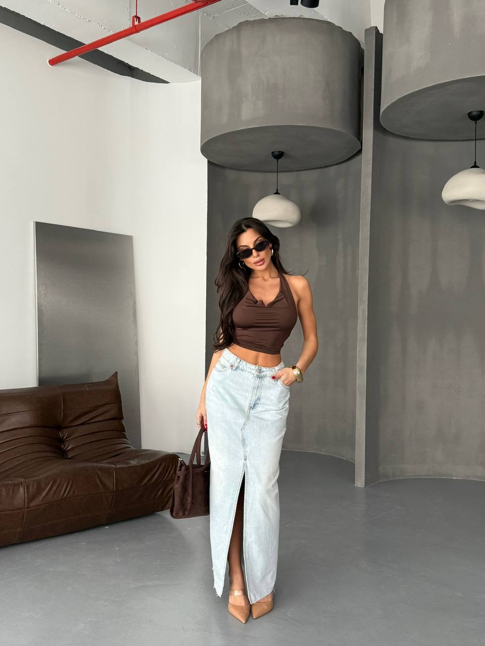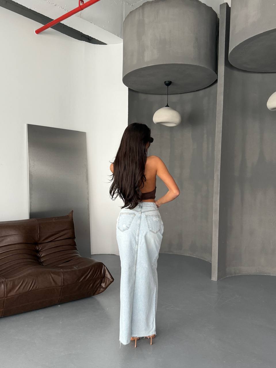 Жіноча Довга Блакитна Джинсова Спідниця Максі з Розрізом та Необробленим Низом
