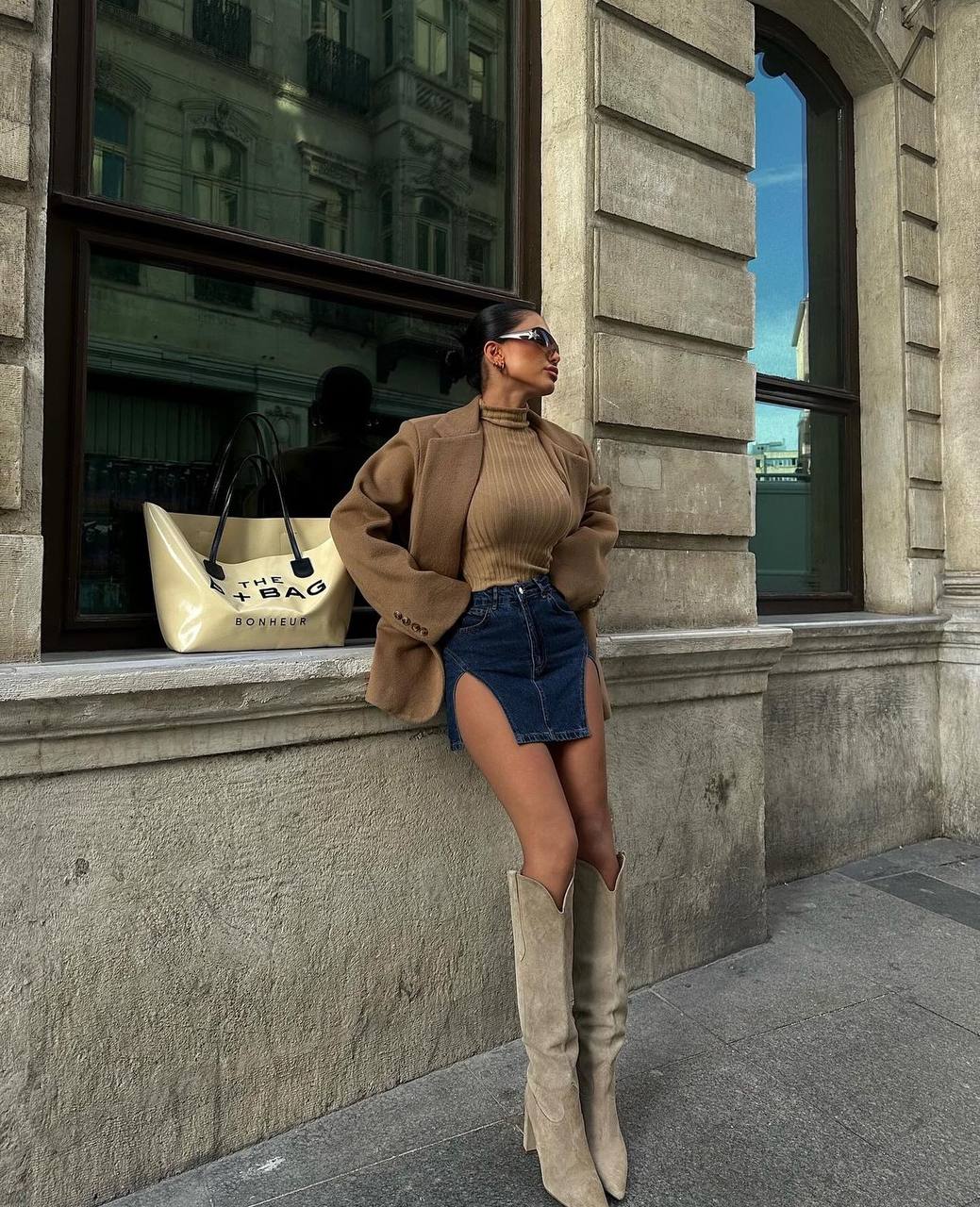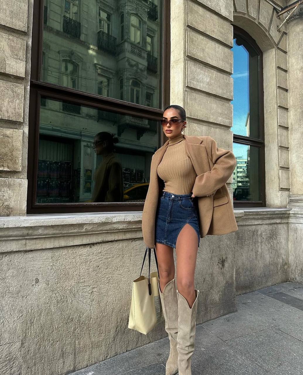 Жіноча Коротка Синя Спідниця Джинсова Міні з Розрізами
