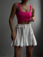 Жіноча Легка Біла Спідниця Міні на Резинці з Рюшами