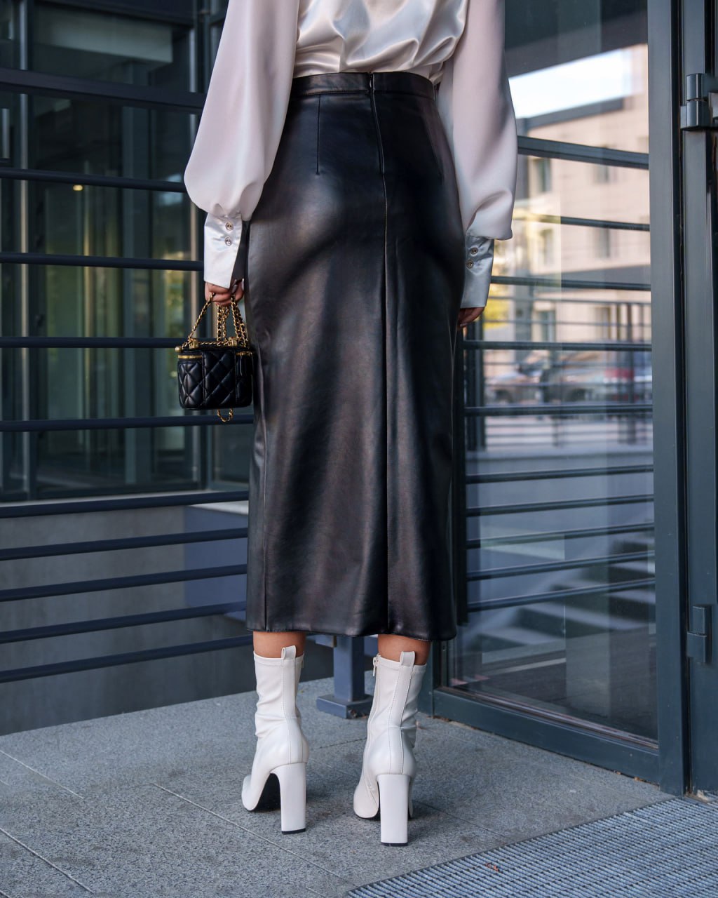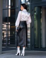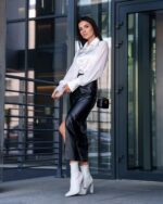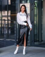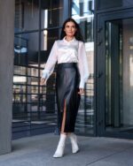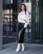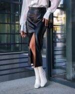 Жіноча Шкіряна Чорна Спідниця Флірт Олівець Міді з Розрізом Спереду