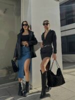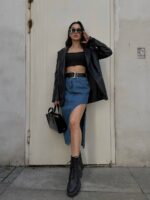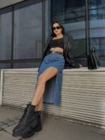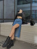 Жіноча Синя Джинсова Спідниця Міді з Високою Талією та Розрізом на Нозі