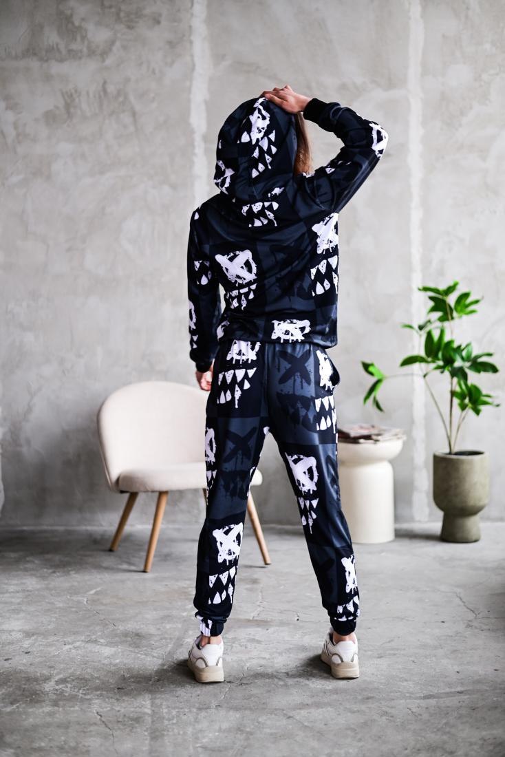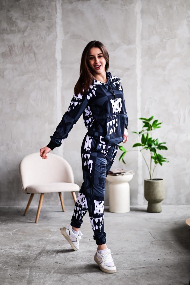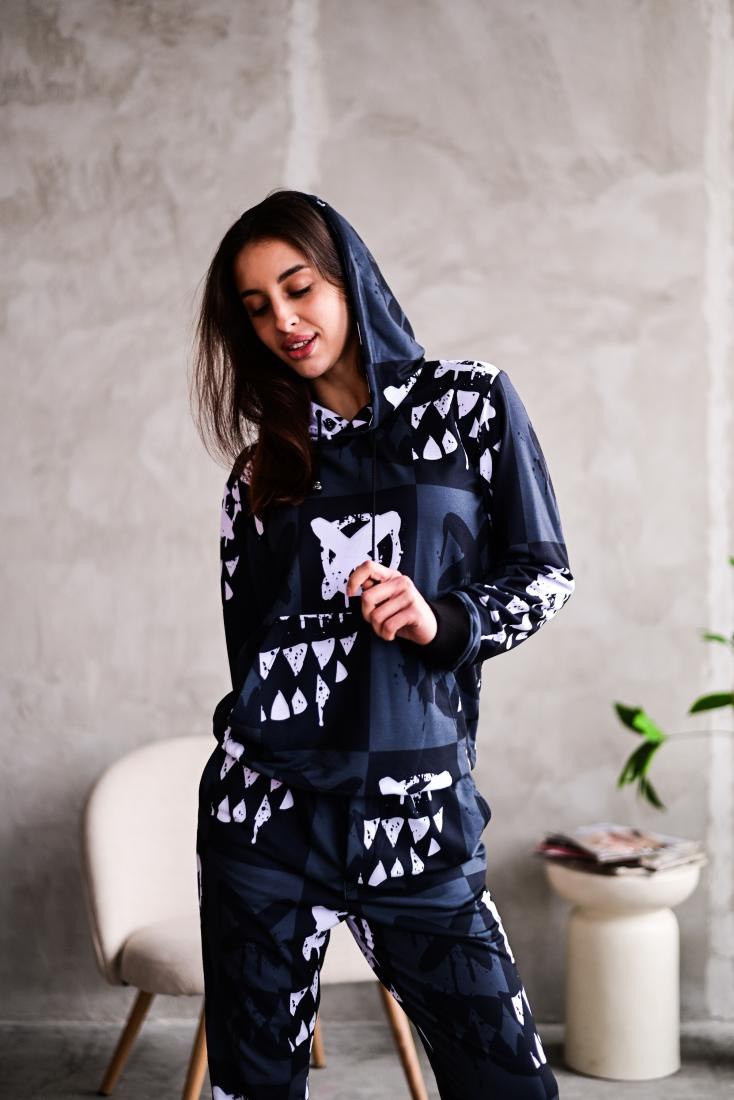 Жіночий Графітовий Спортивний Костюм Худі Джогери – Двонитка Принтований
