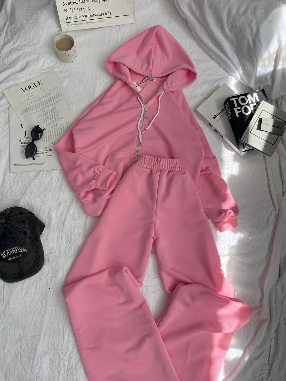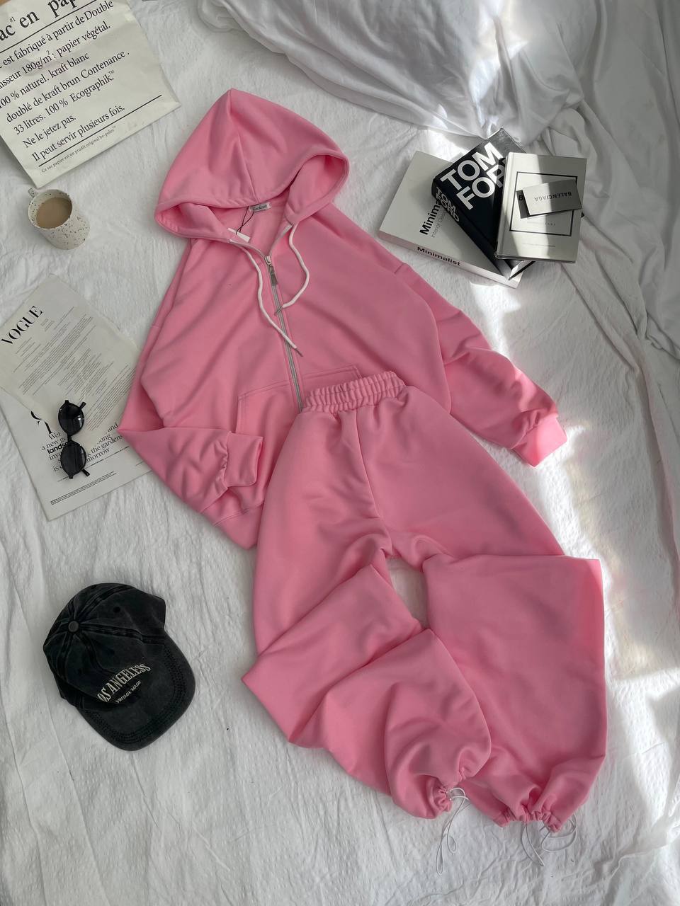 Жіночий Рожевий Костюм Тринитка – Кофта Зіпка на Блискавці + Штани з Кулісками Внизу