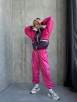 Жіночий Рожевий Костюм Вільного Крою з Плащовки – Бомбер на Блискавці + Штани Джоггери