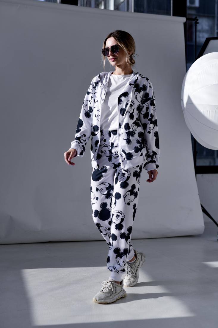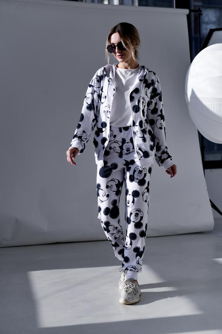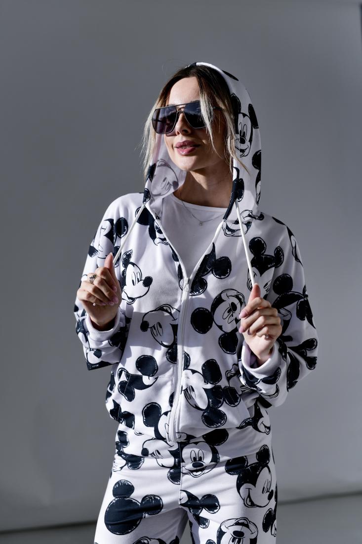 Жіночий Білий Спортивний Костюм Міккі Маус – Зіп Кофта на Блискавці + Штани Джогери