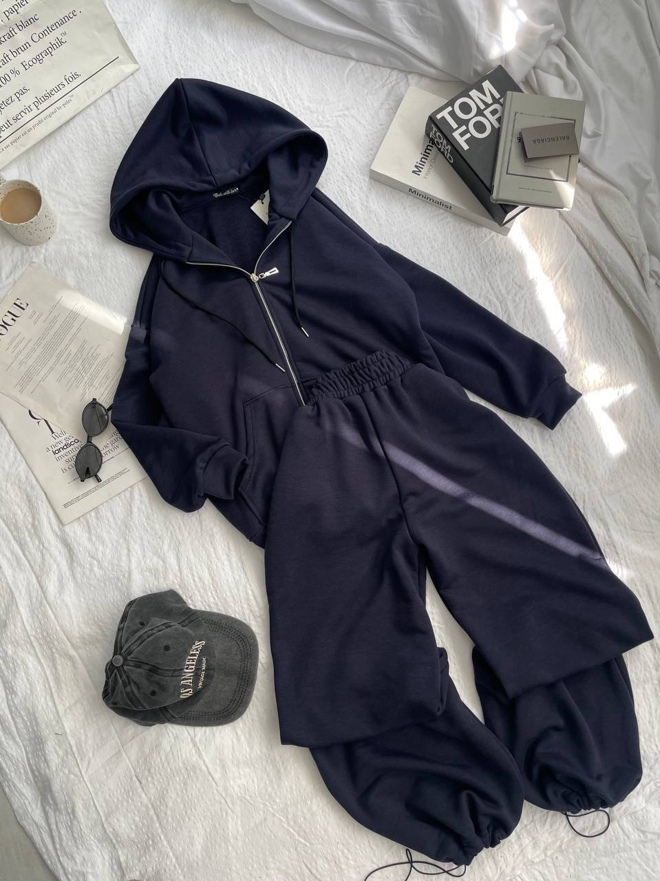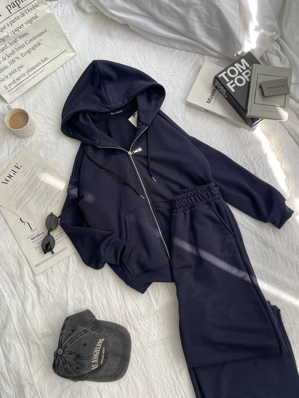 Жіночий Темно-Синій Костюм Тринитка – Кофта Зіпка на Блискавці + Штани з Кулісками Внизу